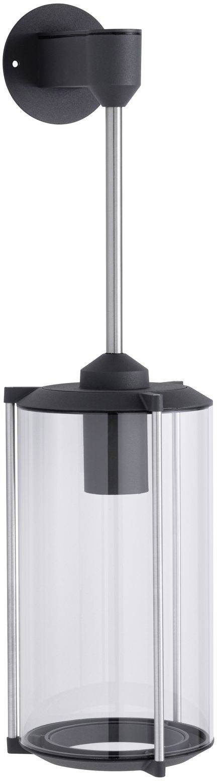 Die Außenwandleuchte mit langer Aufhängung, besticht durch ihr klassisches Design. Das anthrazitfarbene Gerüst und der klare Glasschirm sorgen für eine nostalgische Optik. Als Leuchtmittel eignen sich hier besonders die Vollglas-Filamente im Retro-Look. Dank Spritzwasserschutz, kann die Lampe an jeder Außenwand angebracht werden.