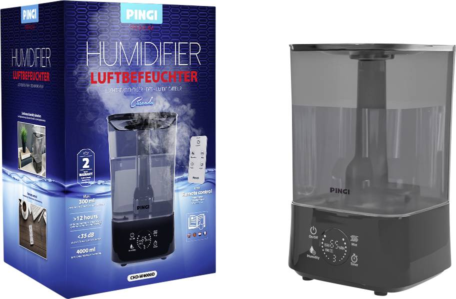 Ihr digitaler Ultraschall-Luftbefeuchter Pingi Cascada CHD-A4000D ist Ihre ideale kompakte Befeuchtungslösung.