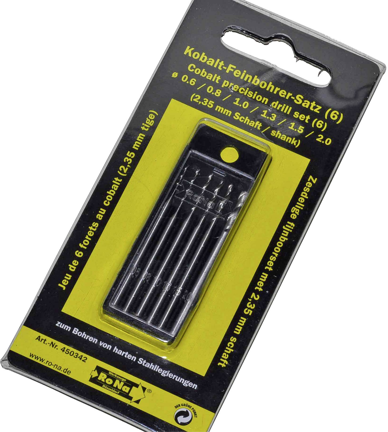 RONA 812167 HSS Metall-Spiralbohrer-Set 6teilig 0.6 mm, 0.8 mm, 1 mm, 1.3 mm, 1.5 mm, 2mm Cobalt DIN 338 Zylinderschaft 1 Set
