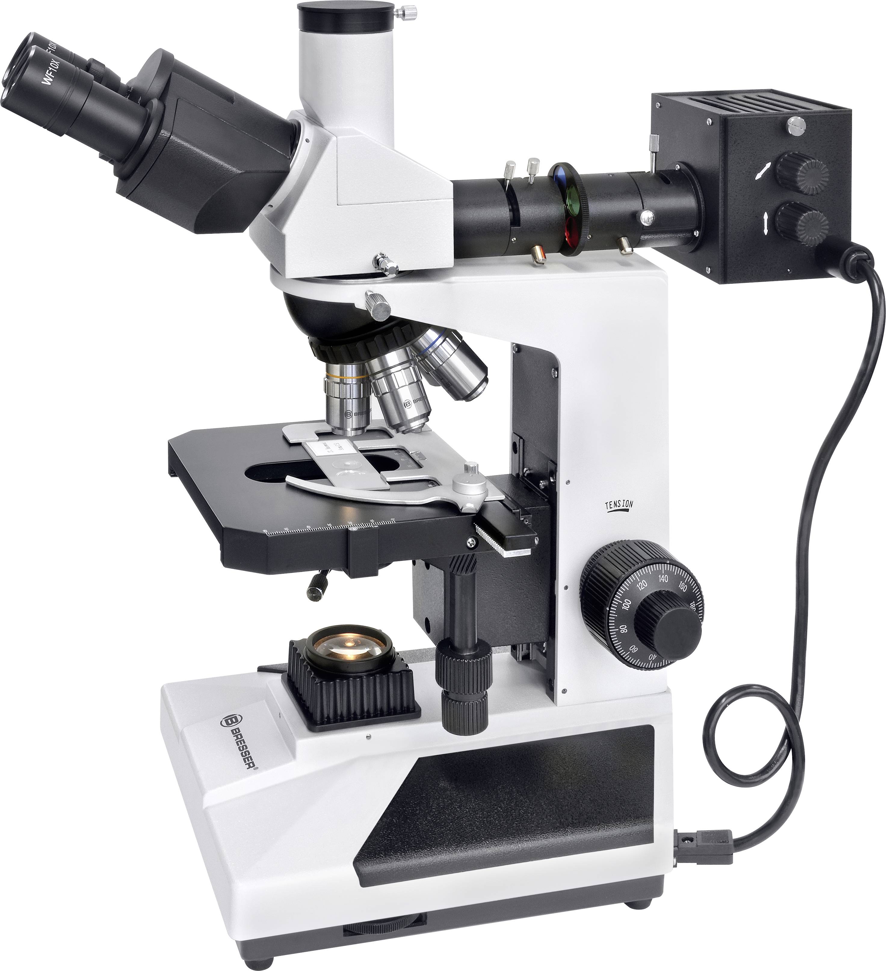 Das BRESSER Science ADL 601 P ist ein professionelles Durch- und Auflichtmikroskop. In der Mikroskopbasis befinden sich eine Halogen-Durchlichtbeleuchtung (20 W) sowie die Stromversorgung und die beiden stufenlos regelbaren Dimmer für Auflicht und Durchlicht. Die beiden trinokularen Mikroskopaufsätze vereinen in sich jeweils beide Beleuchtungsfunktionen, ferner die Möglichkeiten der Fotografie und binokularen Beobachtung; die Neigung der Okularstutzen beträgt 30°. Mit dem Polarisationsaufsatz lassen sich in Forschung, Lehre und Produktion beispielsweise materialkundliche oder apparatetechnische Untersuchungen ausführen. Die Halogen-Auflichtbeleuchtung (20 W), die durch das Objektiv auf das Objekt geht, lässt sich durch ein Farbfilterrad und eine Polarisator/Analysator-Kombination für spezielle Anwendungszwecke modifizieren. Im Ganzen ist das BRESSER Mikroskop Science ADL 601P ein vom Preis-Leistungs-Verhältnis her einzigartiges Instrument, das auch über die weitere, für hochqualitative Mikroskope typische Ausstattung verfügt: Vierfach-Objektivrevolver, mit Trieb quer und längs beweglicher Kreuztisch, koaxiale Fokussiertriebe (fein: 200 µm/Umdrehung), Augenabstands- und Dioptrieneinstellung sowie Fototubus. Optional erhältliches, allgemeines Zubehör sind die Weitfeld-Okulare (WF10x, WF16x), das Messokular (WF10x), verschiedene planachromatische DIN-Objektive (z. B. 4x, 5x, 10x, 20x, 40x gefedert, 60x gefedert, 100x-Öl gefedert), der Abbe-Kondensor (numerische Apertur 1,25; mit Irisblende und Zusatzlinse), Dunkelfeld-Kondensoren (trocken und Öl), Immersionsöl, eine Phasenkontrast-Einrichtung, eine Leuchtfeldblende (für Köhlersche Beleuchtung) und Filter (blau, grün, gelb, matt, Polarisation) für spezielle Anwendungszwecke modifizieren.