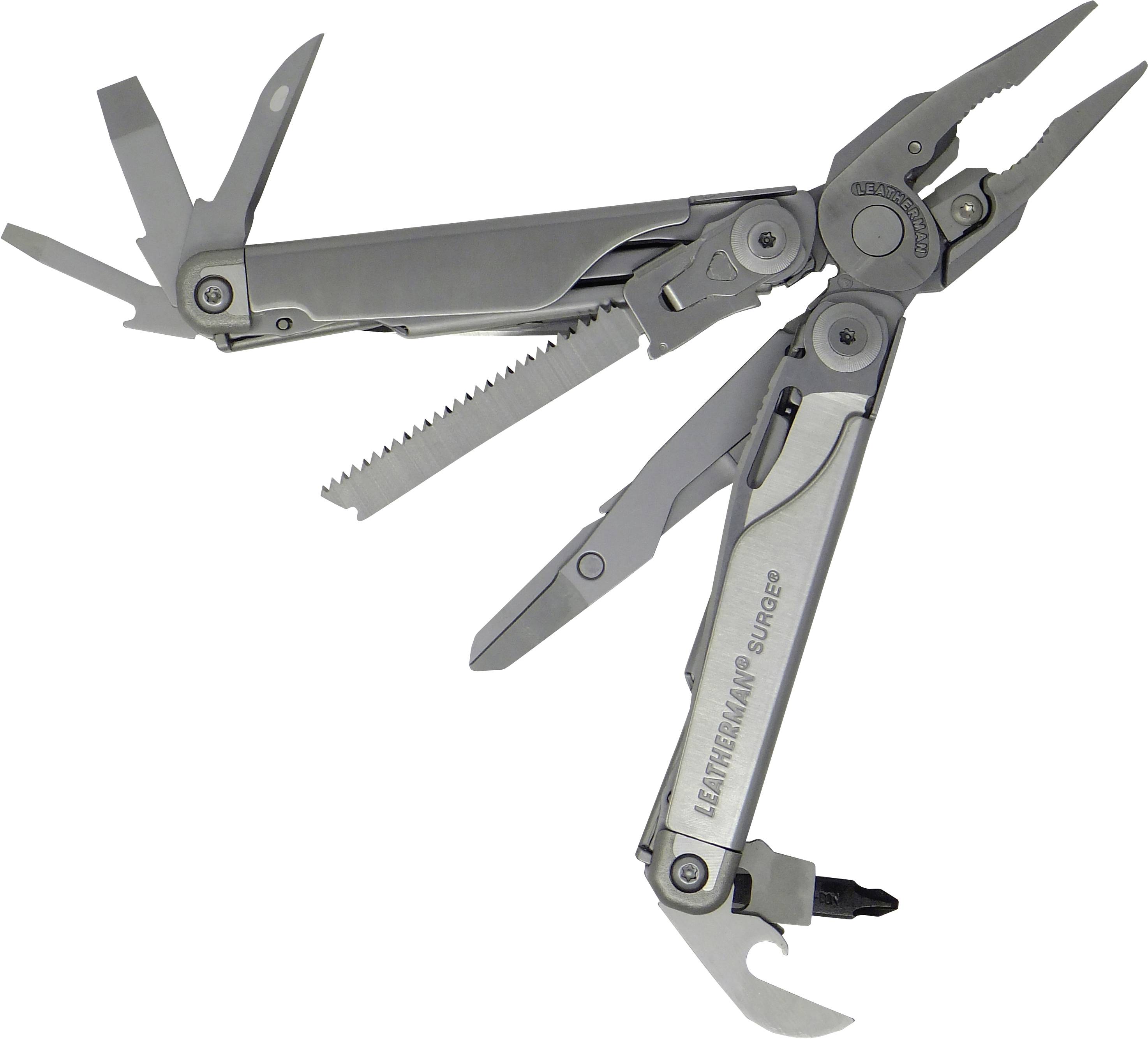 Das Leatherman Surge ist eines unserer umfangreichsten Multi-Tools – ein wahres Kraftpaket, ausgerüstet mit unserer größten Zange und den längsten Multi-Tool-Klingen. Benutzerfreundliche Arretierungen, der einzigartige Klingenwechsler, ein großer Bithalter und vier von außen zugängliche Klingen erlauben schnellen Zugriff auf die Werkzeuge, die Sie am häufigsten brauchen. Das Surge ist der Spezialist für Schwerstarbeit.