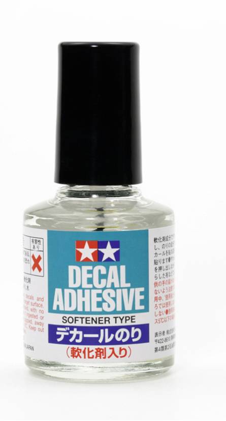 „Decal Adhesive" – Das Haftmittel für Nassschiebedekore die zu lange im Wasserbad eingeweicht oder vergessen wurden. Tragen Sie hierzu mit dem enthaltenen Applikator direkt auf das Modell „Decal Adhesive" auf und platzieren das Dekor, das die Haftkraft verloren hat. Nach dem Aufbringen des Dekors kann das überschüssige Haftmittel mit Wasser wieder entfernt werden.