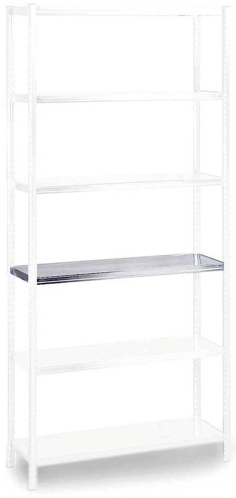 Regalboden, 310 mm. Traglast pro Boden 100 kg bei gleichmäßig verteilter Last.
