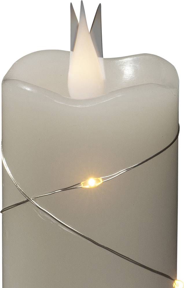 Ob an einem adventlichen Winterabend oder einer lauen Sommernacht – Kerzenflackern und Lichterglanz sind für eine warme, wohltuende Atmosphäre unentbehrlich. Doch dafür müssen Sie nicht zwangsläufig mit dem Feuer spielen. Die Living Light Echtwachskerzen mit 3D-Flamme sind täuschend echt gestaltet und bringen zusätzlich mit ihren LED Tropfen, eine besonders romantische Atmosphäre. Kein Uneingeweihter bemerkt, dass in dieser Kerze ein Batterie-Herz schlägt, das 400 Stunden Kerzenromantik schenkt. Sanft tanzt die Flamme auf und ab und der goldene Schein taucht die Umgebung in sanftes Schummerlicht. Mit dem umwickelten, silberfarbenen Draht wirkt diese LED Echtwachskerze besonders elegant. Setzen Sie zauberhafte, flackernde Glanzpunkte ganz ohne Risiko und Wachsspritzerei. Der Clou? Mit dem Timer können Sie eine Leuchtdauer von vier oder acht Stunden einstellen. Pünktlich erlischt das Licht und flackert am nächsten Tag zur selben Zeit wieder auf. Praktischer und sicherer geht es nicht. Mit dieser Echtwachkerze setzen Sie auf ein unverwechselbares und langlebiges Markenprodukt, an dem Sie und Ihre Lieben dank ausgezeichneter Qualität und geprüfter Sicherheit „alle Jahre wieder“ Freude haben werden