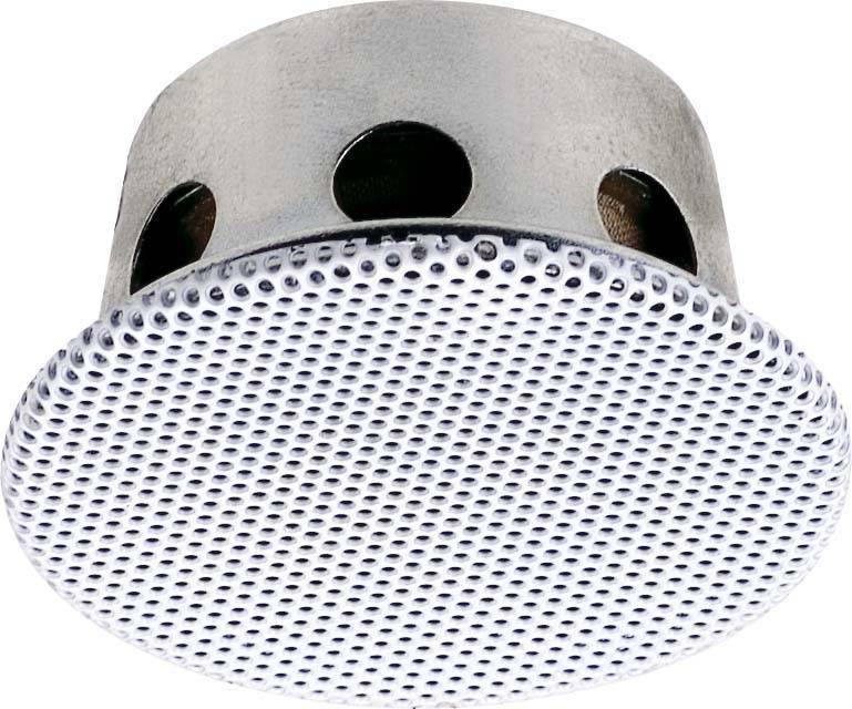 Lautsprecher-Einsatz Ø 50 mm für Einbauleuchten, weiß, rund. Ausgeführt in kompakter Bauform für werkzeuglose Schnellmontage zum Deckeneinbau. Nenn- / Musikbelastbarkeit: 3 / 4 W, Impedanz: 20 Ohm Es können bis zu 5 Lautsprecher an einen Kanal eines Hifi- Verstärkers parallel angeschlossen werden. Schalldruckpegel: 1 W / 1 m: 82 dB (bei Nennleistung 87 dB), Übertragungsbereich (-3 db): 200 - 16.000 Hz, Übertragungsbereich (-10 db): 150 - 20.000 Hz, Ausführung: Lochblechabdeckung weiß oder chrom-metallisiert, Nettogewicht: 0,06 kg Anschluss durch 2-adrige Leitung mit Anschlussklemme. Material: Stahl Einsetzbar in die meisten NV-Halogen-Spots für QR-CBC51. Fassung: ohne, Montageart: Einbaumontage, Montageort: Deckenmontage, Material: Lochblech, Schutzart: nach DIN EN 60529: IP20,