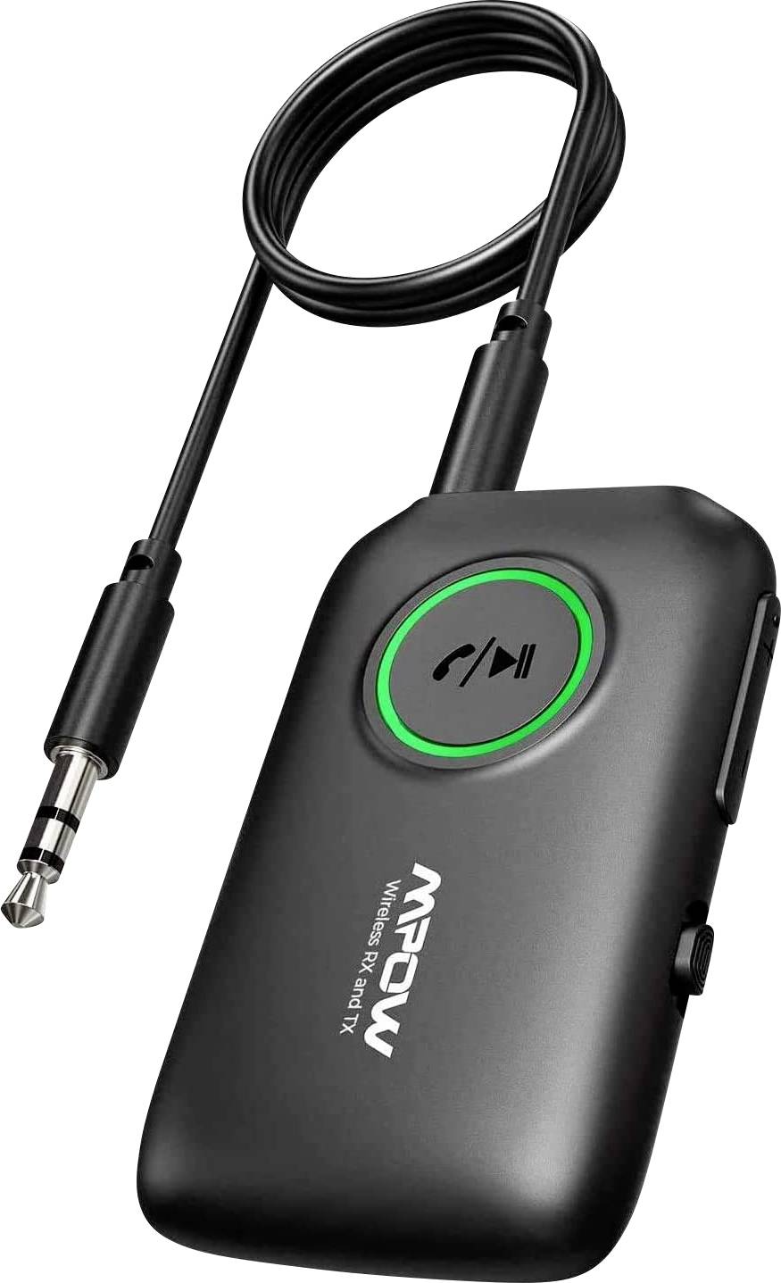 Mpow Bluetooth-Empfänger und -Sender mit eingebauter wiederaufladbarer 170mAH Lithiumbatterie. Und es unterstützt die Verwendung während des Ladens. Bei voller Ladung hält der Akku bis zu 14 Stunden. Die Bluetooth-Reichweite beträgt bis zu 12M.