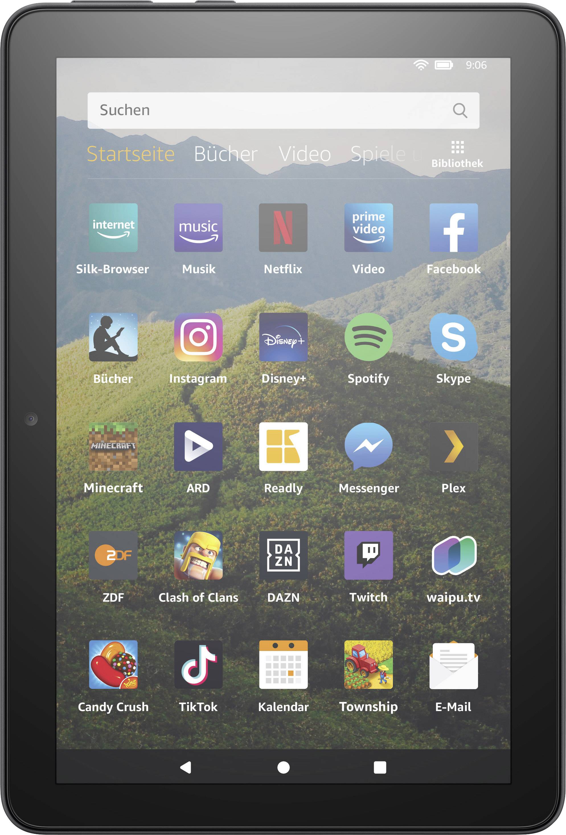 8-Zoll-HD-Display, doppelter Speicherplatz (32 GB interner Speicher und bis zu 1 TB erweiterbarer Speicherplatz mit microSD-Karte) + 2 GB RAM · Bis zu 12 Stunden lesen, im Internet surfen, Videos schauen und Musik hören · Jetzt mit USB-C-Anschluss für schnelleres Aufladen. Lädt in weniger als 5 Stunden vollständig auf (über das mitgelieferte Kabel + Adapter) · Jetzt 30 % schneller dank Quad-Core-Prozessor mit 2,0 GHz · Genießen Sie die Nutzung Ihrer Lieblingsapps, wie beispielsweise Netflix, Facebook, Instagram, TikTok, Disney+, YouTube, ARD, ZDF, waipu.tv und viele mehr (möglicherweise fallen Gebühren an). · Wir präsentieren: den neuen Spielmodus – für ein verbessertes Gaming-Erlebnis frei von Ablenkungen · Mehr Möglichkeiten mit Alexa – spielen Sie Videos ab, fragen Sie nach dem Wetterbericht, dimmen Sie das Licht und streamen Sie Musik. All das allein mit Ihrer Stimme. · 2-MP-Kamera an Vorder- und Rückseite mit 720p HD-Videoaufnahme · Verbessertes Dualband-WLAN