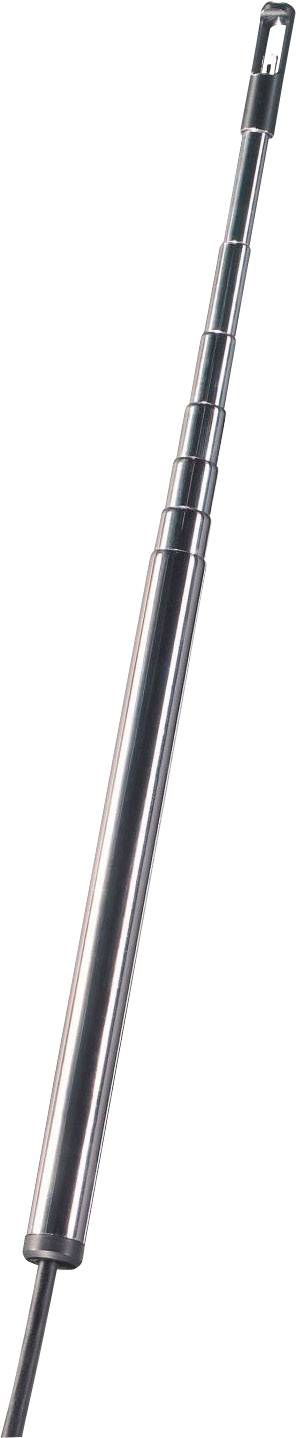 Hitzdraht-Sonde für m/s und °C, Ø 7,5 mm mit Teleskop-Stab bis max. 820 mm. Messbereich Strömung: 0 bis 20 m/s ·Messbereich Temperatur: -20 bis +70 °C · Genauigkeit: ± 0,03 m/s.