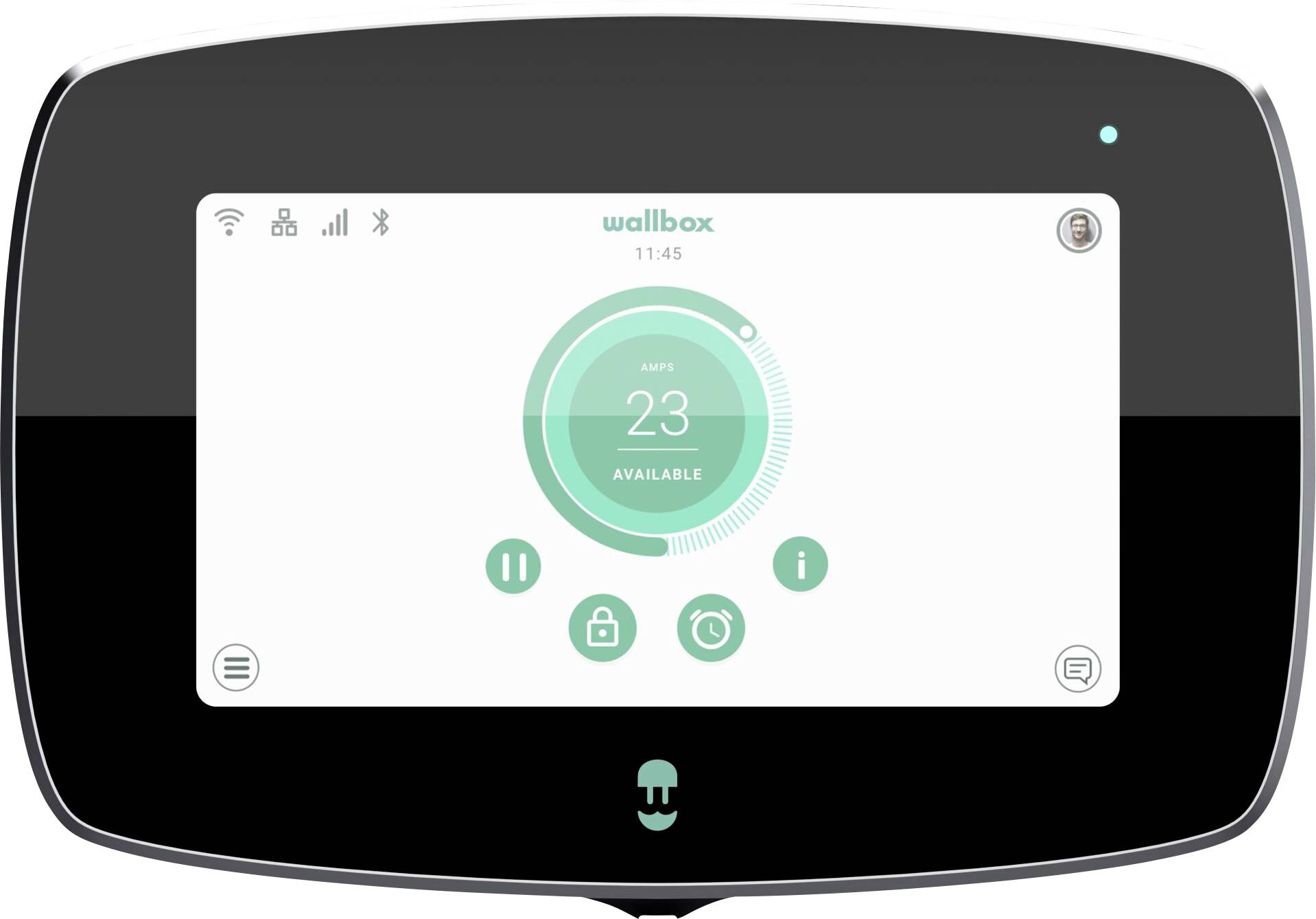 Commander 2 wurde für einen unkomplizierten Zugriff durch mehrere Benutzer konzipiert. Das Ladegerät ist mit einem einfach bedienbaren 17,78 cm (7")-Tochscreen ausgestattet, und jeder Nutzer kann sein Erlebnis individuell anpassen. Commander 2 bietet verschiedene Möglichkeiten der Zugangskontrolle: über ein Passwort, RFID-Karten oder die myWallbox-App. Zudem bietet das Gerät eine Vielzahl von Funktionen, mit denen Sie Ihr Ladegerät über die myWallbox-Plattform steuern können.