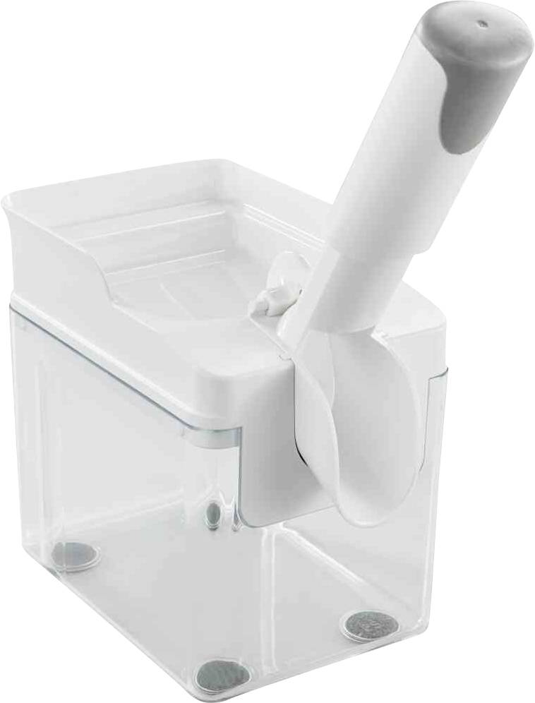 dazu kann der Handgriff des Stößels einfach demontiert und in die Auffangschale gelegt werden
