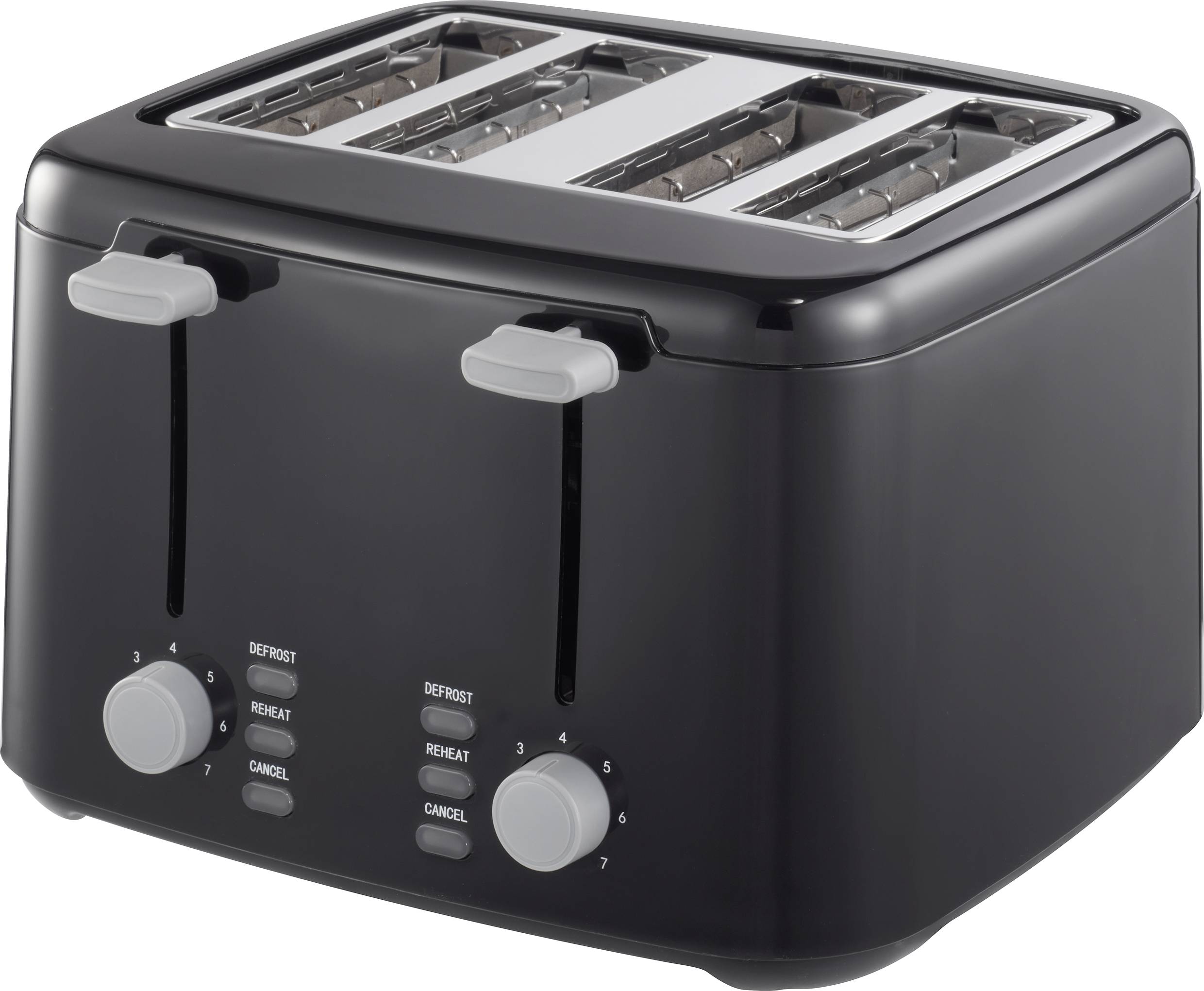 Herrlich duftender Toast - ein Traum für jeden Genießer, nicht nur am sonnigen Sonntagmorgen. Die Range der kulinarischen Vorlieben kann dabei weit auseinandergehen: Der eine mag's gut kross, die andere nur leicht gebräunt. Alles kein Problem für den Toaster, der sieben unterschiedliche Röststufen anbietet und bis zu vier Scheiben gleichzeitig bräunt. Auch Toast mit Übergröße bis zu 120 x 120 mm ist für den in modernem Schwarz designten Toaster kein Problem. Auch speziellen Aufgaben ist er gewachsen: Wer sein Brot im Tiefkühlfach lagert, kann über beleuchtete Tasten die praktische Auftaufunktion anwählen. Auch das Aufwärmen verschiedener Backwaren ist auf Knopfdruck möglich. Zur Reinigung des Toasters einfach die Krümelschublade herausnehmen und schon kann's weitergehen mit der Produktion der nächsten leckeren Knusperverführung.