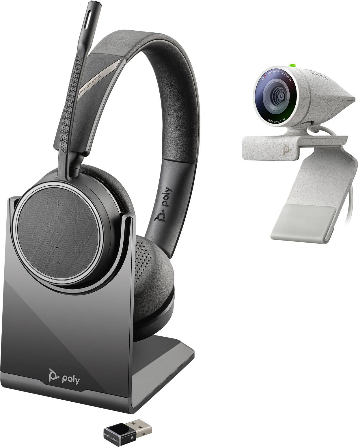 Das Poly Studio P5-Kit mit Poly Voyager 4220 enthält eine professionelle Webcam und ein Stereo Wireless Headset in einem Paket.
