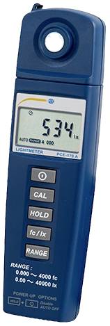 Messgerät für Helligkeit PCE-170 mit integriertem Sensor Helligkeitsmessgerät für die schnelle und genaue Lichtmessung / Messbereich von 0,00 bis 40.000 Lux / Silicon-Photodioden-Sensor / Grosse 5-stellige LCD-Anzeige / Präzise, sofortige Ansprechung / automatische oder manuelle Bereichsumschaltung Das PCE-170A ist ein Messgerät für Helligkeit das sich insbesondere durch die eindrucksvolle Langzeitstabilität sowie das in dieser Geräteklasse hervorragende Preis-Leistungsverhältnis auszeichnet. Das Messgerät für Helligkeit verfügt über einen großen Messbereich, die kurze Ansprechzeit und das kompakte Gehäuse ermöglichen ein schnelles und müheloses Arbeiten mit Einhandbedienung. Diese ist intuitiv und einfach gestaltet, sodass sie auch für Laien schnell erlernbar ist. Mit dem Helligkeitsmesser ist eine professionelle Aussage über die richtigen Lichtverhältnisse schnell und kostenoptimiert möglich. Das Helligkeitsmessgerät eignet sich für vielfältige gewerbliche und industrielle Einsatzbereiche wie z.B. die Optimierung der Lichtverhältnisse an Einzelarbeitsplätzen, in Großraumbüros, in Lagerhallen oder in Industrie- und Wohngebäuden. Außerdem können Fluchtwege mit dem Helligkeitsmessgerät auf ihre korrekte Ausleuchtung geprüft werden. So sind diese Geräte unverzichtbare Helfer im Einsatz für die Gesundheit und den Arbeitsschutz, um auch berufsgenossenschaftlichen Anforderungen zu entsprechen. Arbeitsplätze werden damit sicherer und tragen entscheidend zur Kostensenkung bei. Untersuchungen haben ergeben, dass nicht nur zu wenig, sondern auch zuviel Licht schädlich sein kann. Im häuslichen Bereich können die Lichtverhältnisse z.B. im eigenen Büro kontrolliert werden. Das PCE-170A ist ein digitales Messgerät für Helligkeit in der Einheit Lux (Lumen pro m² oder Lumen pro Fuß²). Der robuste, portable Helligkeitsmesser liefert hochgenaue Messergebnisse und verfügt über eine Nullpunktkalibrierung nach dem Einschalten sowie über eine an die Augencharakteristik angepasste Sensorkurve. Er dient in erster Linie zum Ausmessen von künstlichen Lichtquellen. Gemessen wird die Helligkeit am Messpunkt, unabhängig von Ausdehnung und Richtung der Lichtquelle über eine Silizium-Photodiode. Mit der einfachen Bedienung und dem schnellen Messverfahren wird das Gerät rasch zum vertrauten Werkzeug, das aus dem Arbeitsalltag nicht mehr wegzudenken ist.