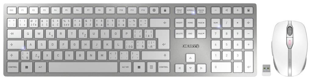Das CHERRY DW 9100 SLIM Desktop-Set begeistert durch innovative Funktionen, herausragende Verarbeitung und extra flaches Design. Verbinden Sie die Funkmaus und Tastatur wahlweise mit dem beiliegenden 2,4 GHz-Funk USB-Empfänger oder per Bluetooth®. Durch einen Schalter an der Wireless Maus bzw. Tastatur wechseln Sie blitzschnell zwischen diesen Verbindungsarten. So lässt sich z. B. ein Notebook per Bluetooth® 4.2 und zusätzlich ein PC über Funk mit dem gleichen Desktop bedienen. Die Übertragung der Daten erfolgt in beiden Fällen mit einer AES-128-Verschlüsselung. Die Reichweite von bis zu 10 Metern ist dabei z. B. auch für Multimedia Anwendungen am Fernseher ausreichend.