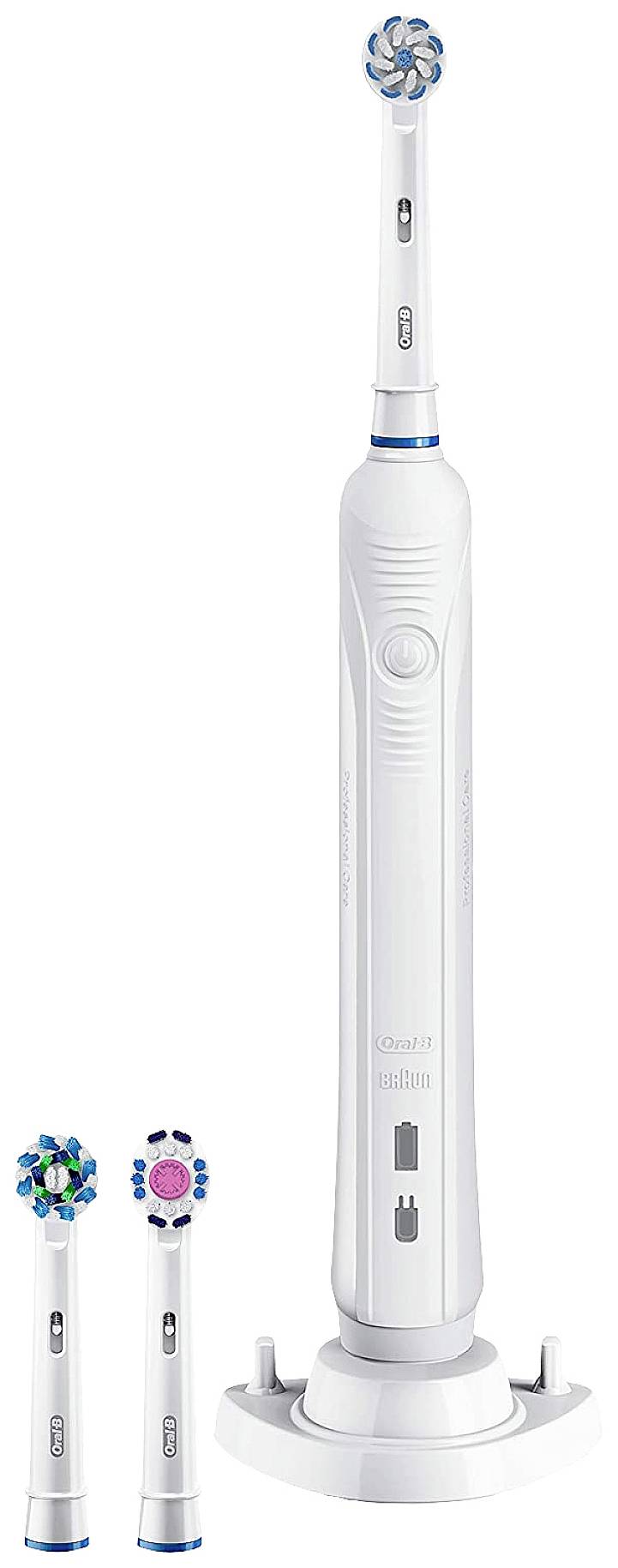 Wiederaufladbare elektrische Zahnbürste mit 2 zusätzlichen Ersatzbürstenköpfen. Entfernt bis zu 100 % mehr Plaque und schützt das Zahnfleisch.