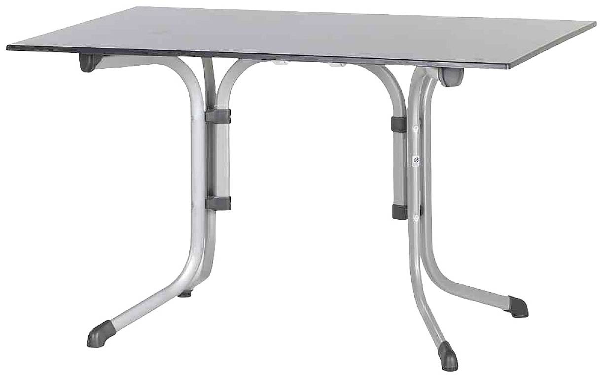 Der Boulevard-Klapptisch 3125-55 hat ein eisengraues Gestell aus polyesterbeschichtetem Profil-Stahlrohr mit einer Rohrstärke von 35 x 28 mm und eine formschöne vivodur® -Schieferdekorplatte in anthrazit. Die Tischplatte hat einen Durchmesser von 68cm. Durch die Polyesterbeschichtung wird das Gestell unempfindlich gegen Witterungseinflüsse. Die Höhe des Tisches beträgt ca. 72 cm. Damit der Tisch auch auf unebenen Flächen einen festen Stand hat, wurde er mit einem Höhenausgleich ausgestattet. Durch seine Klappfunktion ist der Tisch sehr einfach in der Handhabung. Ein weiterer Pluspunkt für diesen Artikel ist, dass er montagefrei angeliefert wird. So können Sie den Tisch sofort nach Erhalt problemlos in Gebrauch nehmen. Insgesamt profitieren Sie bei diesem Artikel von der jahrzehntelangen Erfahrung die SIEGER bei der Herstellung von Gartenmöbeln vorweisen kann. Der Tisch lässt sich ideal mit Möbeln aus dem SIEGER-Sortiment kombinieren!
