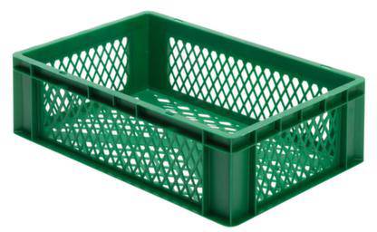 Euronorm-Stapelbehälter - Aus bruchfestem Polypropylen - Lebensmittelecht - Temperaturbeständig von -20°C bis +80°C - Maßlich auf die Europalette abgestimmt - Geeignet für Rollen- und Röllchenbahnen - Wände und Boden durchbrochen.