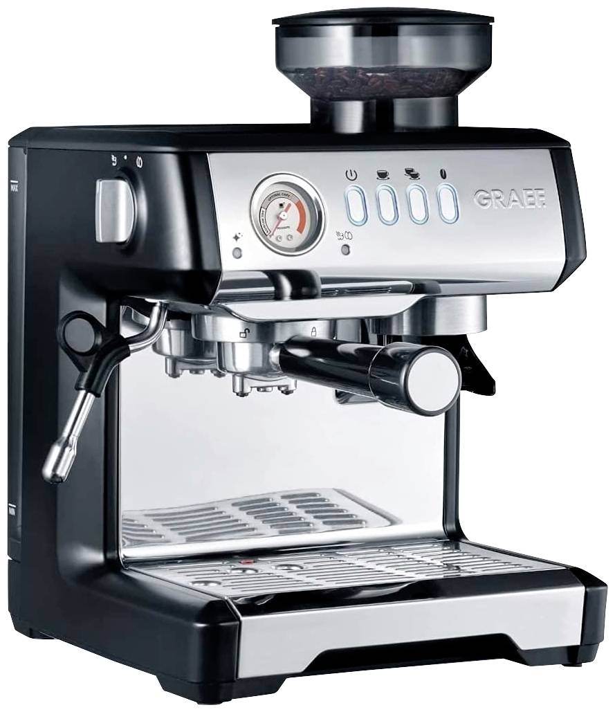 Graef ESM 802 Espressomaschine mit Siebträger Schwarz, Edelstahl 1600W mit Heißwasserauslass, mit Mahlwerk