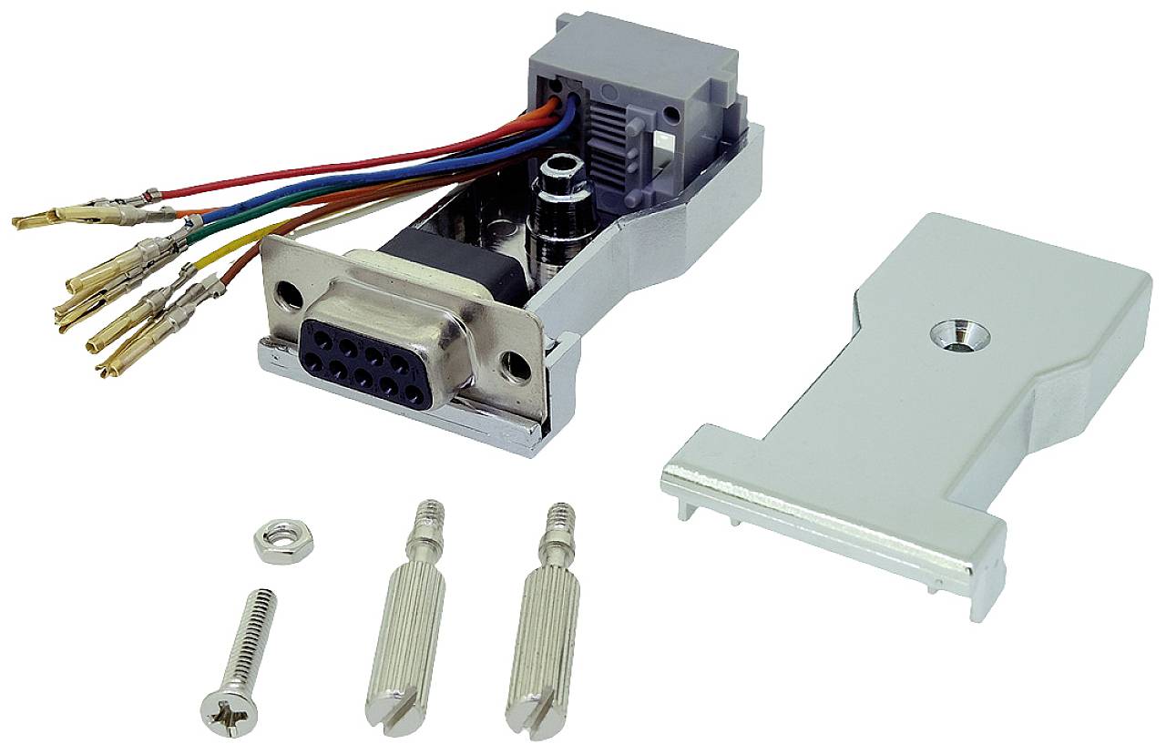 RS232 zu RJ45 Adapter zur einfachen Montage von seriellen Leitungen Einfache Montage von seriellen Leitungen durch die Modularität der RJ45 Stecksysteme An beiden Seiten wird ein Adapter eingesetzt und dazwischen mit 8-adrigem konfektioniertem Telefonkabel oder gängigem Lan-Patch-Kabel verbunden Belegung RJ45 1 blau 2 orange 3 schwarz 4 rot 5 grün 6 gelb 7 braun 8 weiss