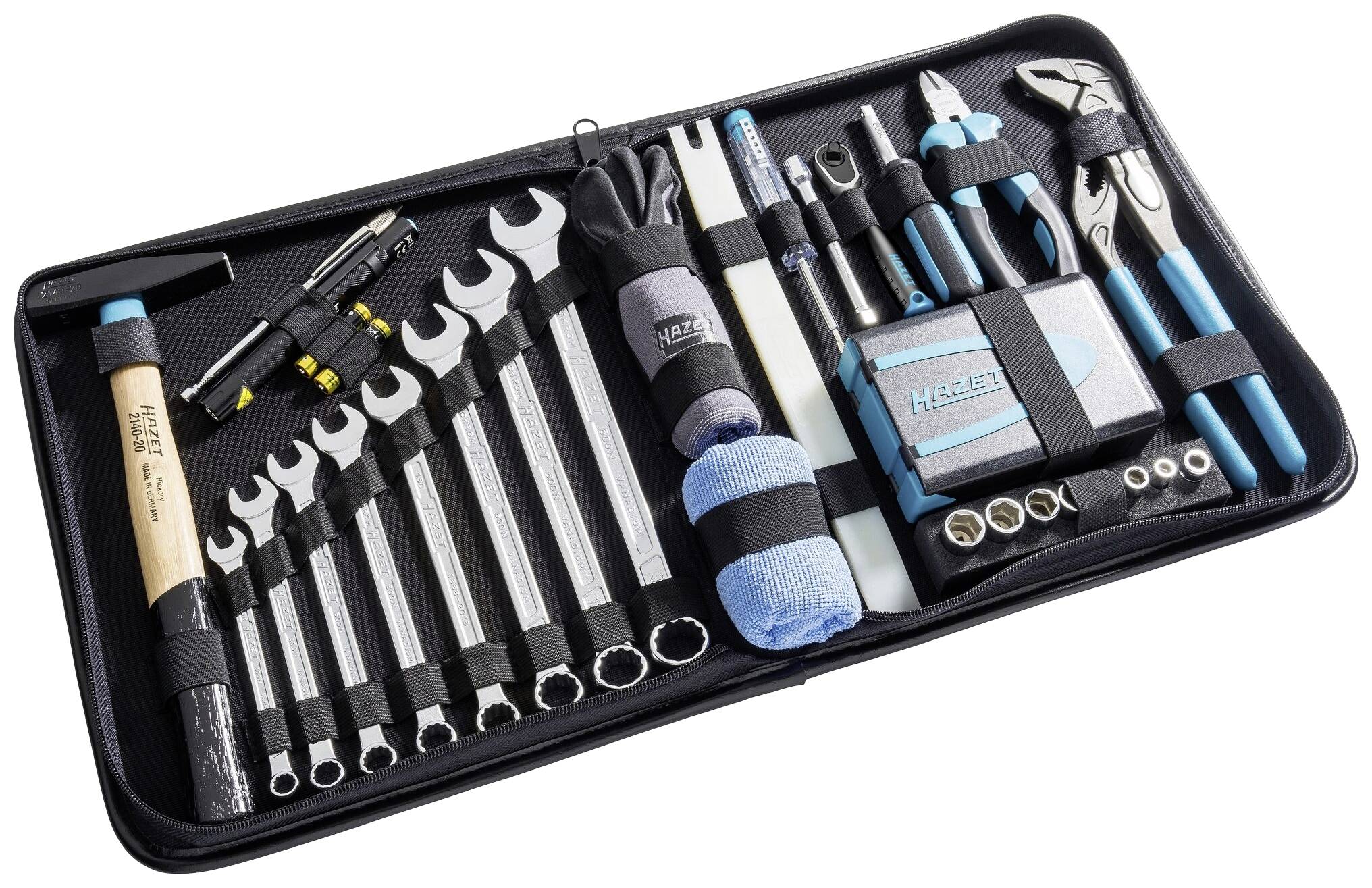 Strapazierfähiges Micro-Leder mit superweicher, wasserabweisender Oberfläche HAZET Logo – hochwertig geprägt Antrieb: Sechskant massiv 6,3 (1/4 Zoll), Vierkant hohl 6,3 mm (1/4 Zoll) Abtrieb: Außen-Doppel-Sechskant-Tractionsprofil, Außen-Sechskant-Tractionsprofil, Kreuzschlitz Profil PH, Pozidriv Profil PZ, Innen-Sechskant Profil, Schlitz Profil, Innen TORX® Profil, Tamper Resistant TORX® Profil Abmessungen / Länge: 275 mm x 310 mm x 65 mm Anzahl Werkzeuge: 64