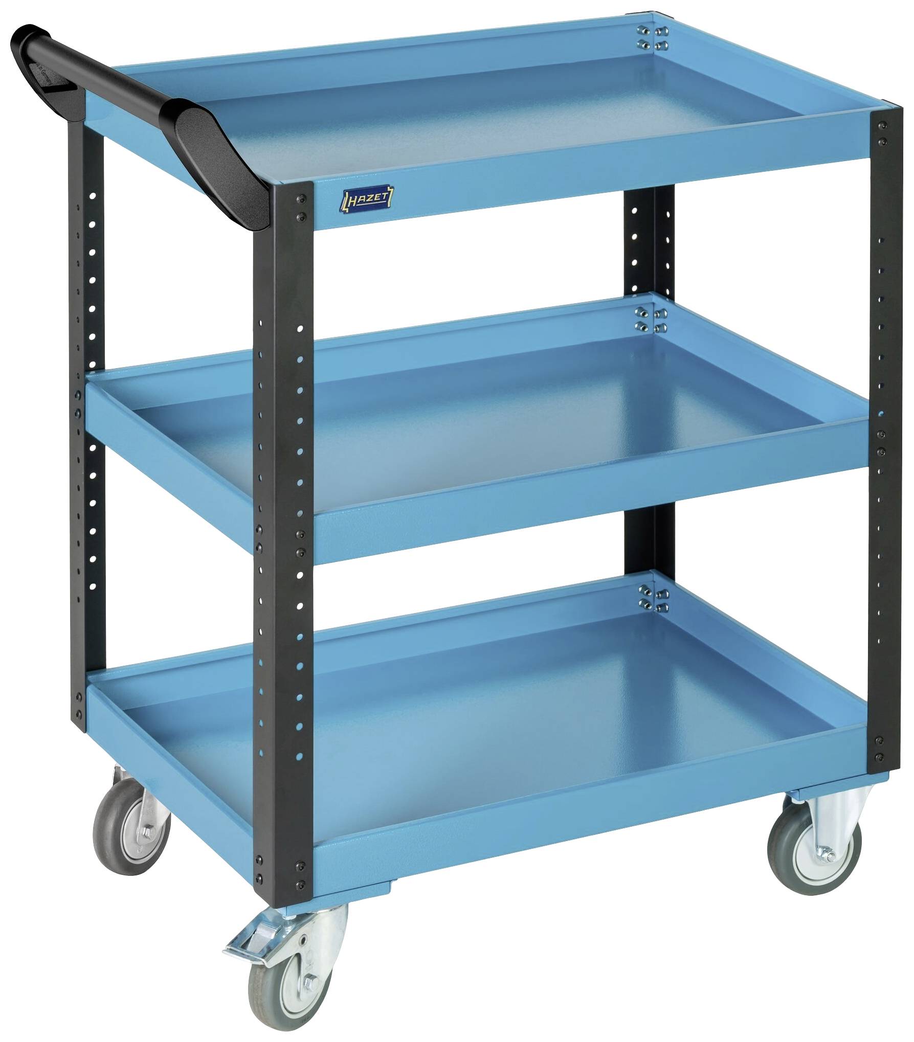 Flexibel und stabil für alle Zwecke 15-fach höhenverstellbar (mittlerer Boden) Weiterer Boden und Anti-Rutschmatte (2x 180-38) optional lieferbar Stabile Stahlblech-Konstruktion, Tragkraft pro Boden: 50 kg Große kugelgelagerte Räder (⌀ 100 mm), 2 Lenkrollen (1 x mit Doppelstopp), 2 Bockrollen Fadenschutz – schützt die Lager vor Schmutz und Fäden Einfaches Bewegen auch bei hoher dynamischer Last Graue spurlose Elastikrollen ermöglichen ruhigen Lauf Stabiler Fahrgriff, fest am Korpus montiert Für HAZET Safety-Insert-System, 2-Komponenten Weichschaum-Einlage Traglast pro Ebene: 50 kg Gesamttragkraft (dynamisch): 150 kg Gesamttragkraft (statisch): 150 kg Farbe: HAZET blau Made In Germany Abmessungen / Länge: 890 mm x 542 mm x 899 mm Höhe Arbeitsfläche: 845 Anzahl Bockrollen: 2 (Ø 100 mm) Anzahl Lenkrollen: 2 (Ø 100 mm)