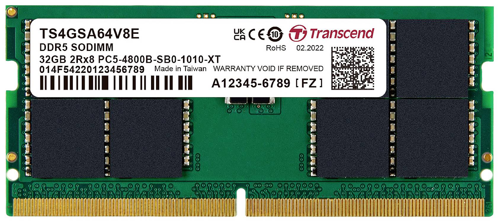 Transcend Laptop-Arbeitsspeicher Modul Industrial DDR5 32GB 1 x 32GB 4800MHz 262pin SO-DIMM CL40 TS4GSA64V8E