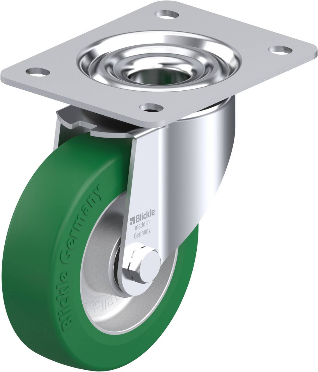 • Laufbelag: hochwertiges Polyurethan-Elastomer Blickle Softhane®, Härte 75 Shore A, Farbe grün, spurlos, kontaktverfärbungsfrei