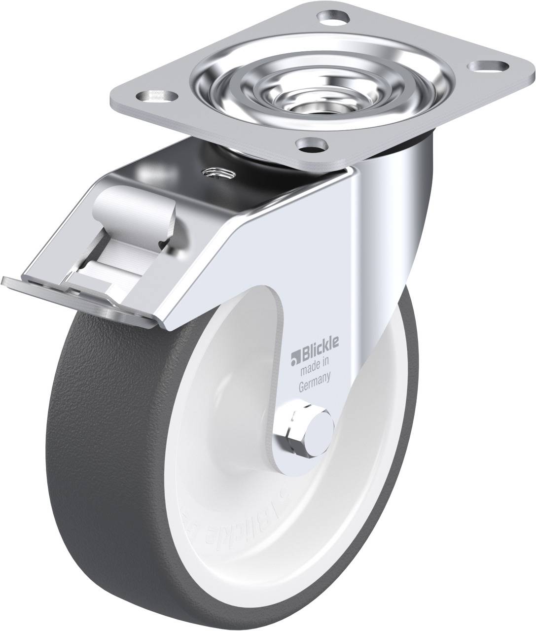 • minimales Drehkranzspiel, leichtgängiger Lauf, hohe Lebensdauer durch die spezielle dynamische Blickle-Vernietung