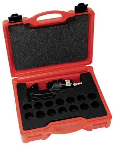 geeignet zum Verpressen von Aluminiumkabeln und Kupferkabeln bis 400qmm, robuste und kompakte Konstruktion, C-förmiger Presskopf zum einfachen Einlegen der Presseinsätze, Schnellverschlussnippel mit Staubschutzkappe, max. Hub 43mm, Kopföffnung 42mm, Presskraft 130kN, Betriebsdruck 700bar