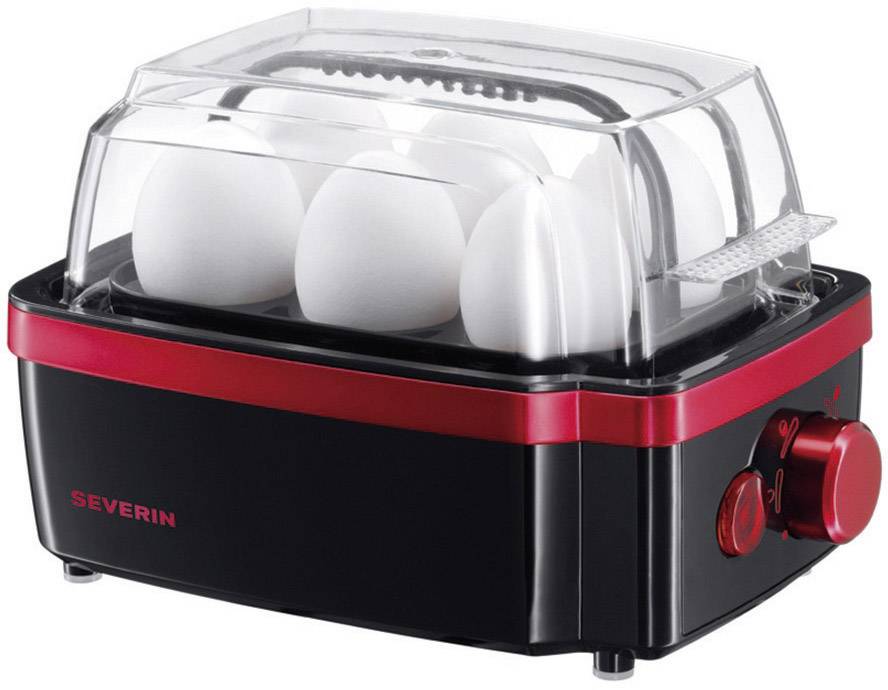 Severin EK 3156 Eierkocher mit Eierstecher, mit Messbecher Schwarz, Rot (metallic)