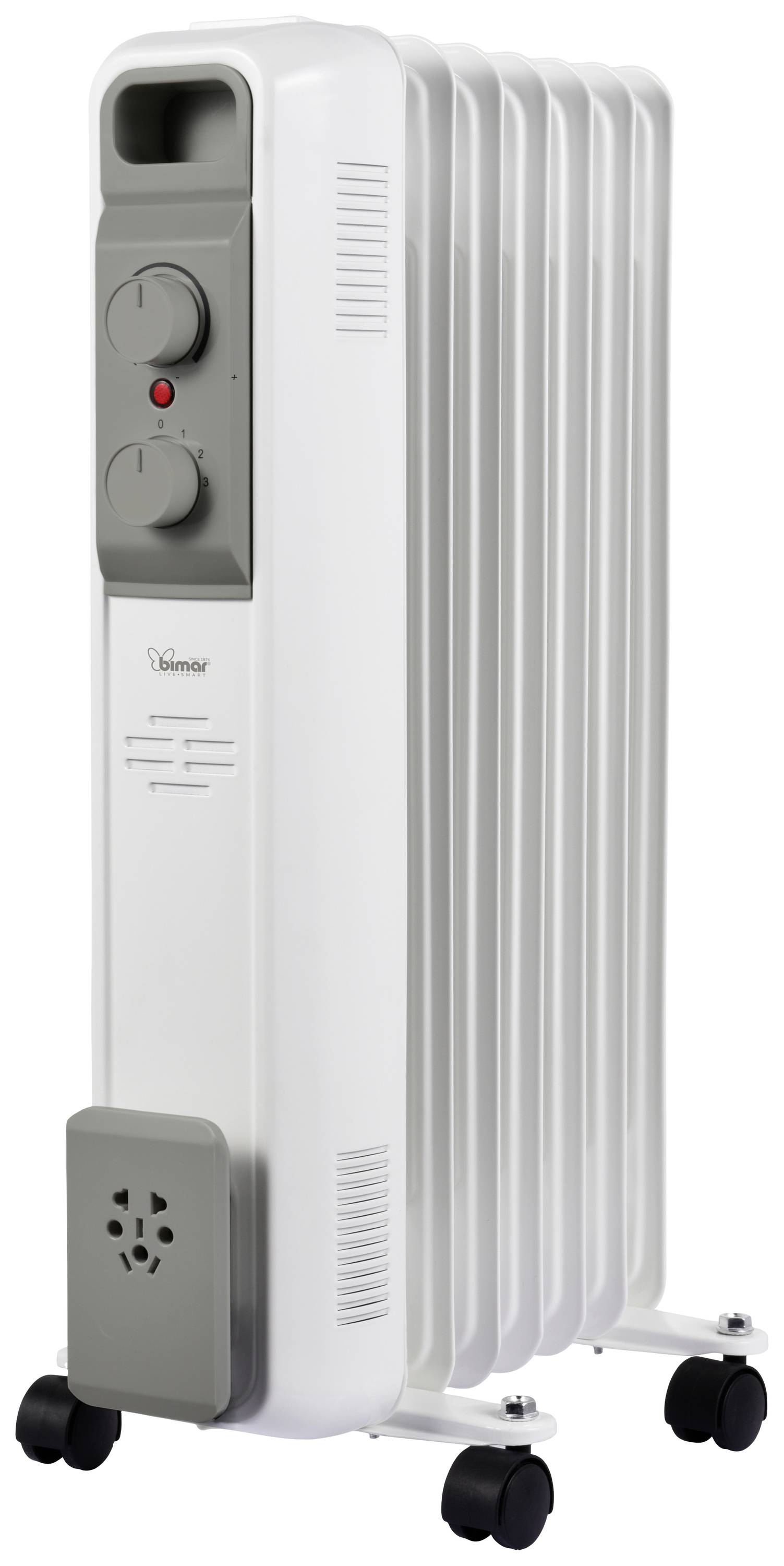Ölgefüllter Heizkörper mit 7 Elementen, 125x575mm groß, und 5 Ölzirkulationskanälen: er heizt durch natürliche Konvektion. Leicht zu bewegen mit 4 Rädern und integriertem Griff im Bedienfeld.