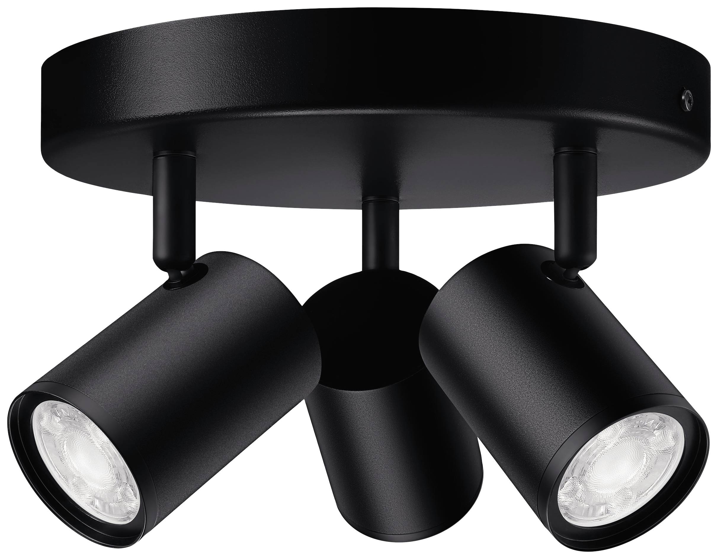 Drei einstellbare Spots auf einem stilvollen, runden Deckensockel bieten viele unterhaltsame Optionen, um Räume mit schönem Licht und Farbe zu durchfluten. Es ist möglich, mit unserer Spotleuchte eine Lichtszene auszuwählen, oder über die App automatisierte Routinen zu nutzen.