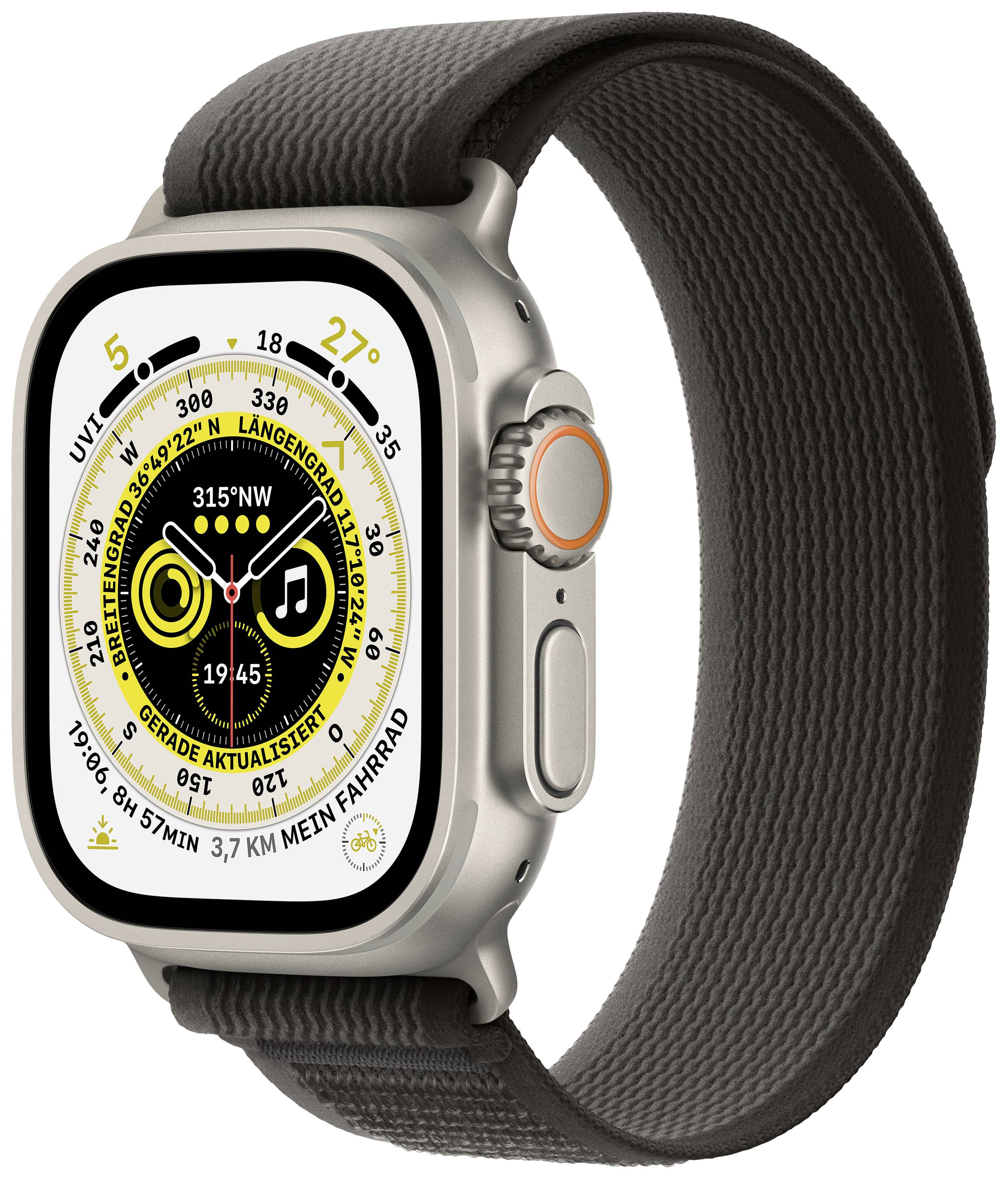 Wassergeschützt 100 m (2) · Größere Toleranzen bei der Betriebstemperatur am Handgelenk für extrem unterschiedliche Umgebungen · Anpassbarer Action Button, um Kompass Wegpunkte zu setzen, Backtracks zu starten, Segmente in Trainings zumarkieren, die Taschenlampe einzuschalten und mehr · Fortschrittliche Sicherheitsfeatures wie Sirene, Backtrack, Sturzerkennung, Notruf SOS3 und Unfallerkennung · Verbesserte Trainingsapp mit neuen Messwerten, neuen Ansichten und fortschrittlichen Trainings · Eine komplett überarbeitete Kompass App mit Wegpunkten und Backtrack · Tiefenmesser und Wassertemperatur-Sensor aktivieren sich automatisch, wenn du untertauchst · Geeignet für Sport-und Freitauchen bis zu einer Tiefe von 40 Metern (4) · Integrierter Mobilfunk macht es dir leicht, mit den Menschen und Informationen in Verbindung zu bleiben, die dir wichtig sind (5) · Fortschrittliche Gesundheitssensoren, damit du ein EKG (6) machen und deine Herzfrequenz messen, Änderungen deiner Temperatur verfolgen (7), deinen Zyklus besser verstehen (8) und deinen Blutsauerstoffwert messen (9) kannst · Verfolge deine tägliche Aktivität auf der Apple Watch und sieh dir deine Trends in der Fitness App auf dem iPhone an · Streame oder synchronisiere Musik, Podcasts und Hörbücher · Mit Apple Pay bezahlst du Einkäufe direkt und sicher vom Handgelenk aus (10) · watchOS 9 kommt mit einer verbesserten Trainingsapp, der neuen Medikation App, Schlafphasen und besseren Einblicken in die Herzgesundheit · Mit einer Apple Watch bekommst du 3 Monate Apple Fitness+ kostenlos, mit 11 unterschiedlichen Trainingsarten, von HIIT bis Yoga, und sogar Meditationen (11)