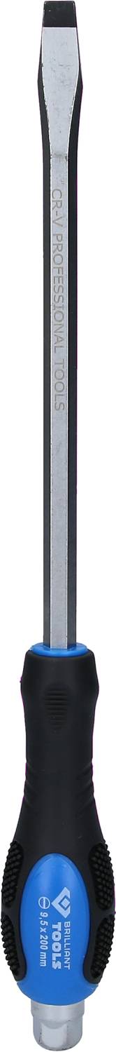 Der BRILLIANT TOOLS Schlitz-Schraubendreher mit Schlagkappe BT034806 mit einer Klingengröße von 9,5 mm ist der perfekte Problemlöser bei festsitzenden Schrauben. Diese werden durch leichte Schläge mit einem Hammer auf die Schlagkappe gelockert. Durch den Antriebssechskant an der Klinge kann an dieser Stelle zur Unterstützung ein Schraubenschlüssel eingesetzt werden. Der Schraubendreher hat eine Klingenlänge von 20 cm.