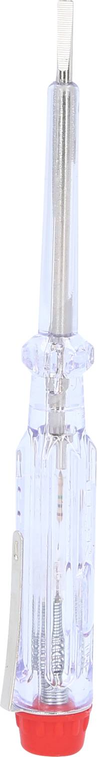 Der BRILLIANT TOOLS Spannungsprüfer BT068001 mit einer Gesamtlänge von 14 cm entspricht der DIN Vorschrift. Er zum Feststellen von Wechselspannungen im Niederspannungsbereich von 120 bis 250 V bestens geeignet. Die Klinge ist vernickelt und vollisoliert. Die vernickelte Klinge mit einem Maß von 0,5 mm x 3,0 mm ist durchgehend gehärtet. Zudem verfügt der Spannungsprüfer über einen praktischen Federstahlclip für die Brusttasche.