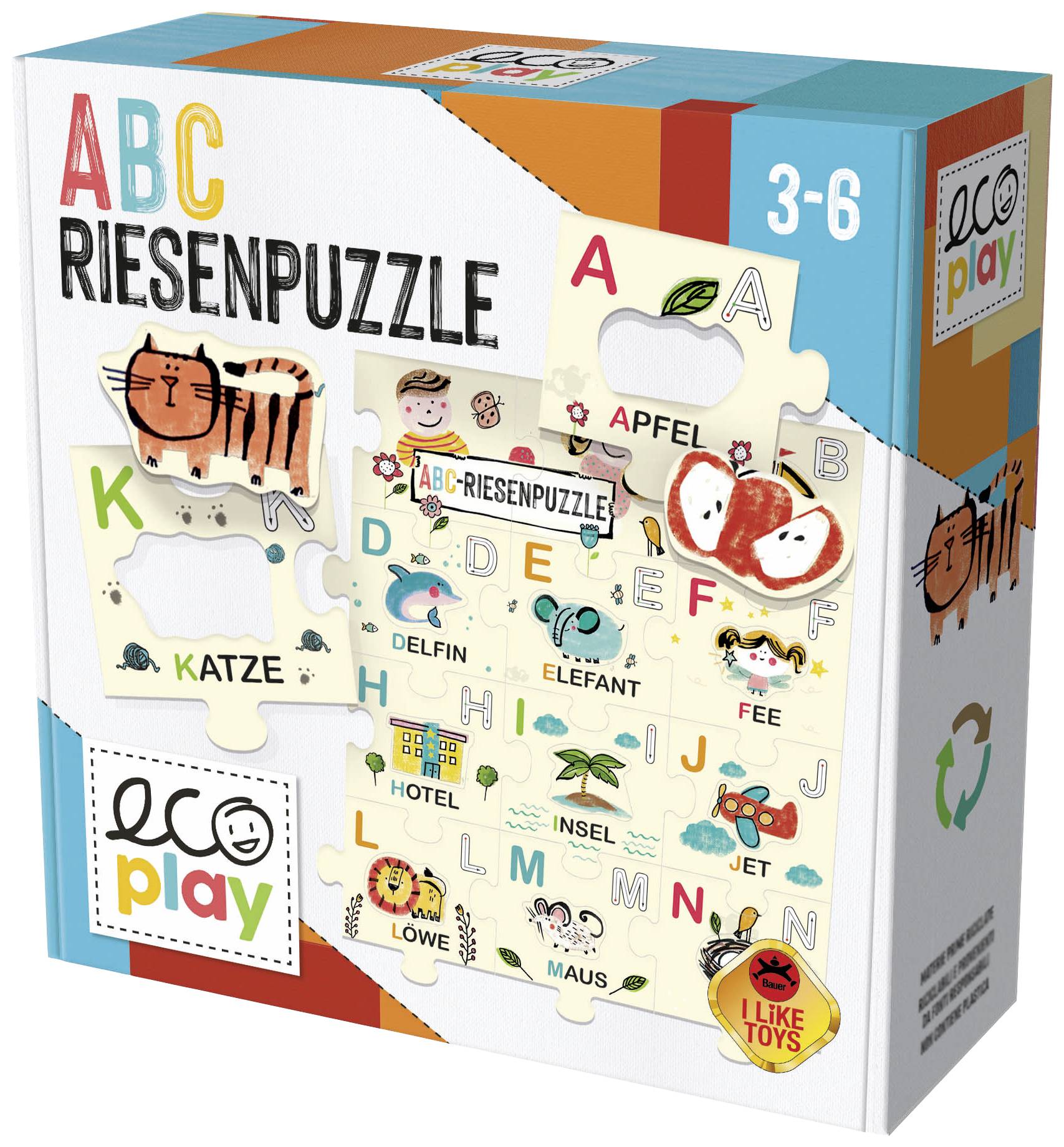Das Lernspiel „ABC Riesenpuzzle – Buchstaben und Wörter für jüngere Kinder!“ von Ecoplay ist geeignet für Kinder im Alter von 3 bis 6 Jahren. A wie Apfel! B wie Boot! C wie Computer! Setze das große Alphabet zusammen und erkenne Buchstaben und Wörter mithilfe der geformten Teile zum Selbstkorrigieren. Das Montessori-Spiel hilft Kindern spielerisch das Alphabet kennenzulernen, erste Wörter zu lernen und ihre manuelle Geschicklichkeit zu entwickeln.