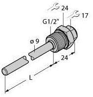 Zubehör, Schutzrohr, für Temperatursensoren, Schutzrohr zur Montage von Temperaturfühlern, Fühlerdurchmesser 6 mm, Prozessanschluss G1/2” Außengewinde, Eintauchtiefe 300 mm