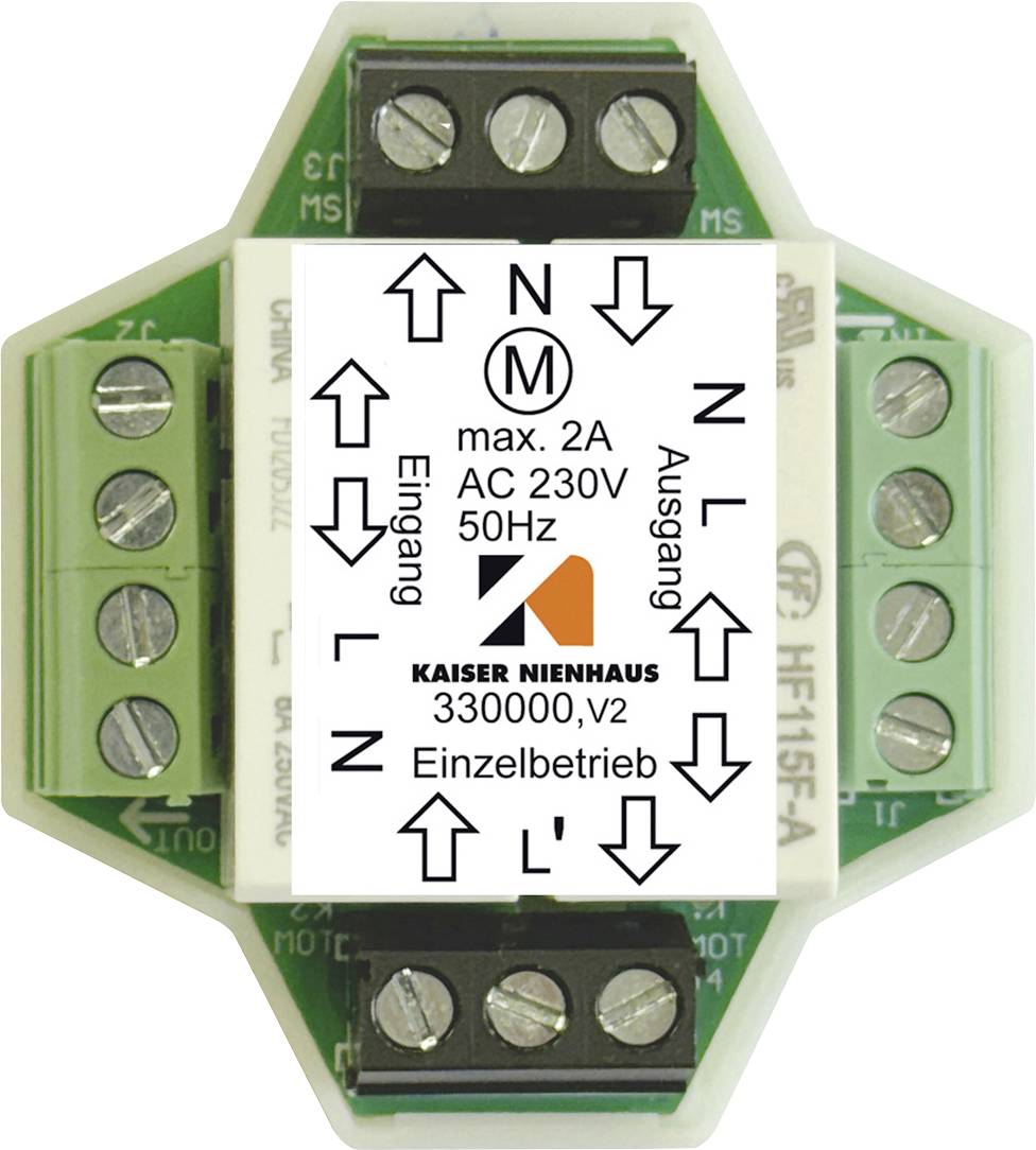 Werden immer gebraucht, wenn mehrere Motoren über einen Schalter oder einen Timer bedient werden sollen. Mit Zentraleingang für Zentralbefehl und Anschlussmöglichkeit für eine Einzelbedienung. Nur 22 mm hoch - kann in die tiefe Schalterdose eingebaut werden.