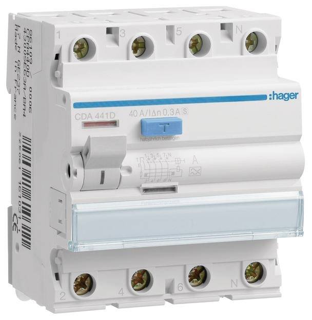 Hager CDA441D CDA441D FI-Schutzschalter A 4polig 40A 0.03A 110V