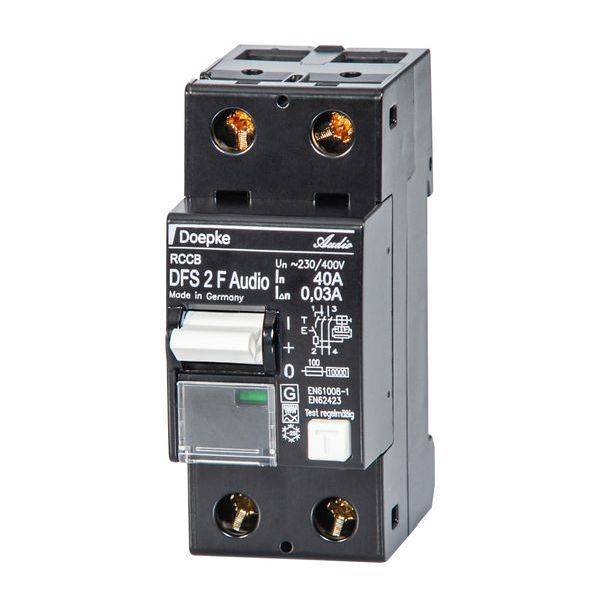 Fehlerstromschutzschalter (RCCB) schalten die Stromversorgung ab, wenn gefährlich hohe Fehlerströme auftreten. Sie schützen so Personen, Tiere und Anlagen. DFS 2 sind zweipolige Fehlerstromschutzschalter für einphasige Netze. In Standardausführung sind die kompakten Geräte zwei Teilungseinheiten schmal. Sie sind mit vielen verschiedenen Fehlerstromtypen und Ausführungen bei Bemessungsströmen bis zu 125 A erhältlich. Die großen Doppelstockklemmen können auch große Leiterquerschnitte aufnehmen. Die Ausgelöststellung des Multifunktionsschaltknebel erleichtert die Fehlersuche. Die kostenlose Etikettensoftware hilft bei der Beschriftung. Schalter des Typs F sind mischfrequenzsensitiv. Sie schützen netzspannungsunabhängig vor Puls- und Wechselfehlerströmen sowie Fehlerströmen mit Mischfrequenzen abweichend von 50 Hz. Sie sind erhöht stoßstrom- und gewitterfest. Fehlerstromschutzschalter in der Audio-Ausführung sorgen für eine ungestörte Klangqualität angeschlossener hochwertiger Audioanlagen. Sie sind besonders niederimpedant aufgebaut und ermöglichen so einen uneingeschränkten Stromfluss. Eigenschaften: 2-polige Ausführung in schmaler 2 TE Baubreite; sensitiv für Wechsel- und pulsierende Gleichfehlerströme der Netzfrequenz (Typ A) sowie Wechselfehlerströme mit Mischfrequenzen ungleich 50 Hz; hohe Immunität gegen Stoßfehlerströme und netzspannungsgetriebene Folgestromimpulse; besonders geeignet für den Schutz hochwertiger Audio-Komponenten; konstruktive Optimierung in Bezug auf die Klangqualität, z. B. versilberte, interne Stromleiter, versilberte Anschlussklemmen, etc; geringe Baugröße für alle Bemessungsströme; hohe Kurzschlussfestigkeit; beidseitige Doppelstockklemmen für großen Leiterquerschnitt und Schienenanschluss; Schaltstellungsanzeige; Sichtfenster für Beschriftungsetiketten; Multifunktionsschaltknebel mit drei Positionen: "ein", "aus", "ausgelöst"; Anschluss C1 Neutralleiterposition beliebig; Montageart: Schnellbefestigung auf Tragschiene; Einbaulage beliebig; Einspeiserichtung beliebig; Einsatzgebiete: Der DFS-Audio findet speziell in Stromkreisen mit hochwertigen, audiophilen Komponenten wie z. B. Plattenspieler, CD-Spieler, Netzwerk-Streamer, Verstärker, Aktivlautsprecher oder auch Beschallungsanlagen für Theatersäle, Kinos, usw. seinen Einsatz. Ein Fehlerstromschutzschalter vom Typ F gewährleistet eine hohe Anlagenverfügbarkeit durch Unempfindlichkeit gegenüber transienten Stoßströmen sowie eine zuverlässige Erfassung von Wechsel- und Pulsfehlerströmen der Bemessungsfrequenz (50 Hz), auch wenn weitere Frequenzanteile im Fehlerstrom vorhanden sind. wie sie durch heutige Audio-Geräte mit Transformator- oder Schaltnetzteilen auftreten können. Hinweise: Auch als 60-Hz-Variante verfügbar.
