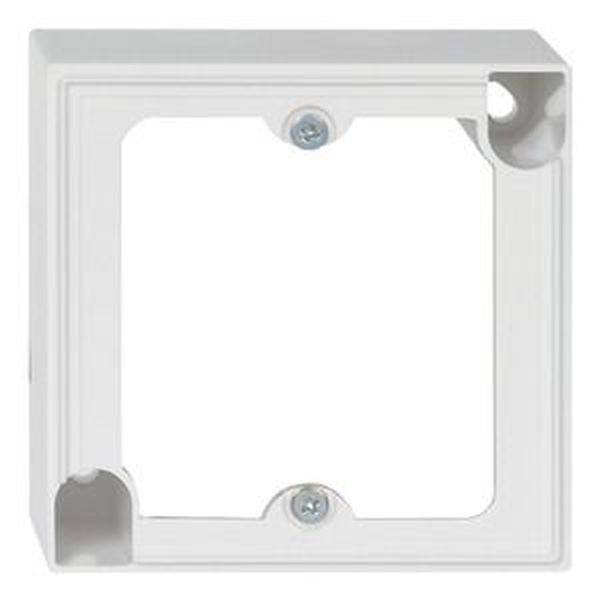 Aufputzgehäuse 1-fach, Farbe reinweiß zur Aufnahme der Unterputzgeräte bei Aufputzmontage, separater Rahmen erforderlich! mit Grundplatte Art. 274114 auch für brennbare Untergründe geeignet.