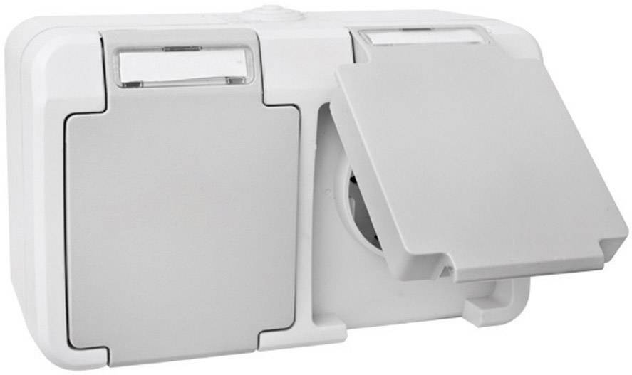 Peranova 102439 Feuchtraum-Schalterprogramm Doppelsteckdose Pera Hellgrau, Dunkelgrau 1St.