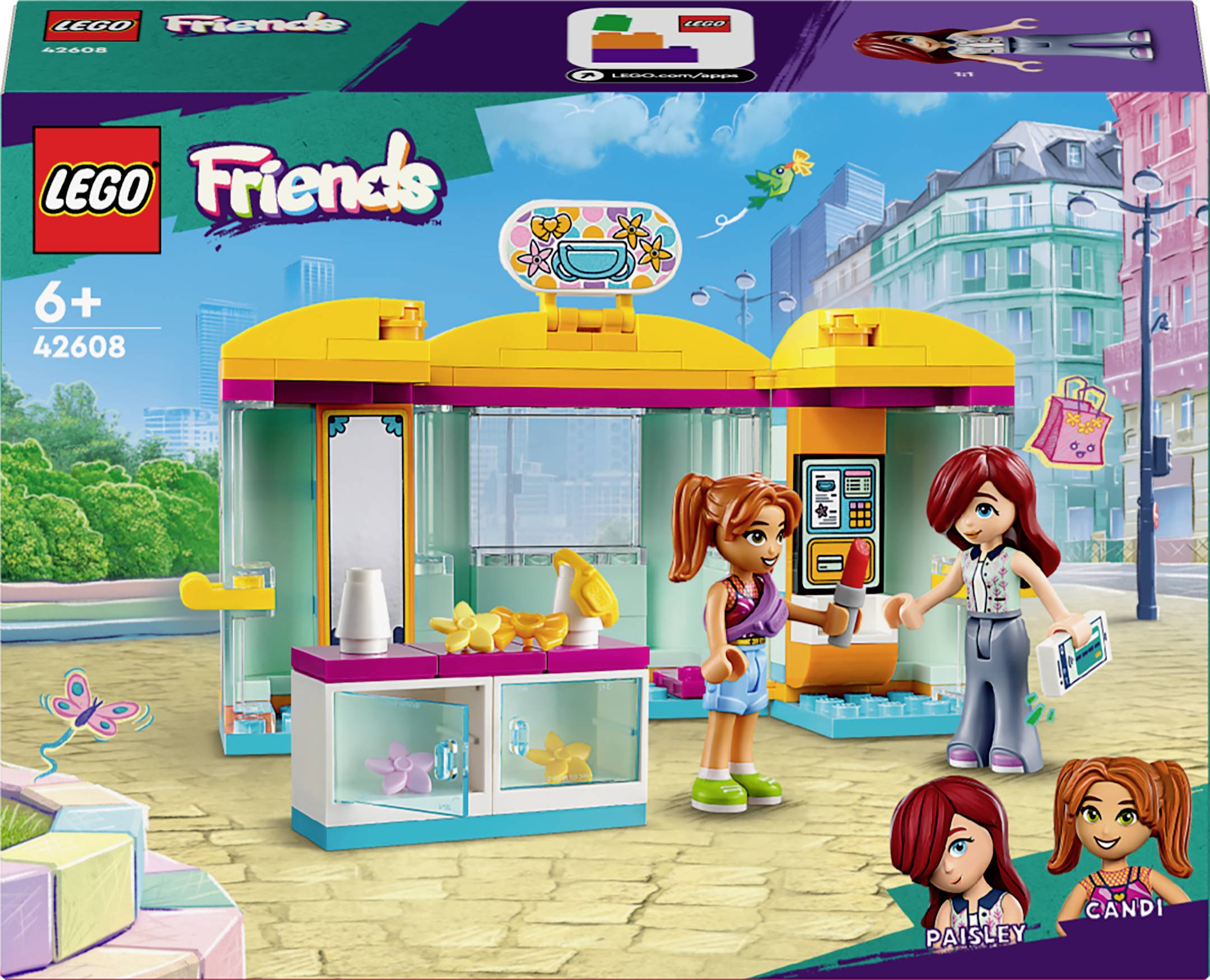 Die LEGO Friends Mini-Boutique (42608) ist ein Spielzeug-Laden für 6-jährige Mädchen und Jungen und eine tolle Belohnung für kreative Kinder. Mit diesem kleinen LEGO Set kann dein Kind Paisley in die Boutique begleiten, wo Candi ihr hilft, eine neue Gürteltasche und Haarschmuck auszusuchen.