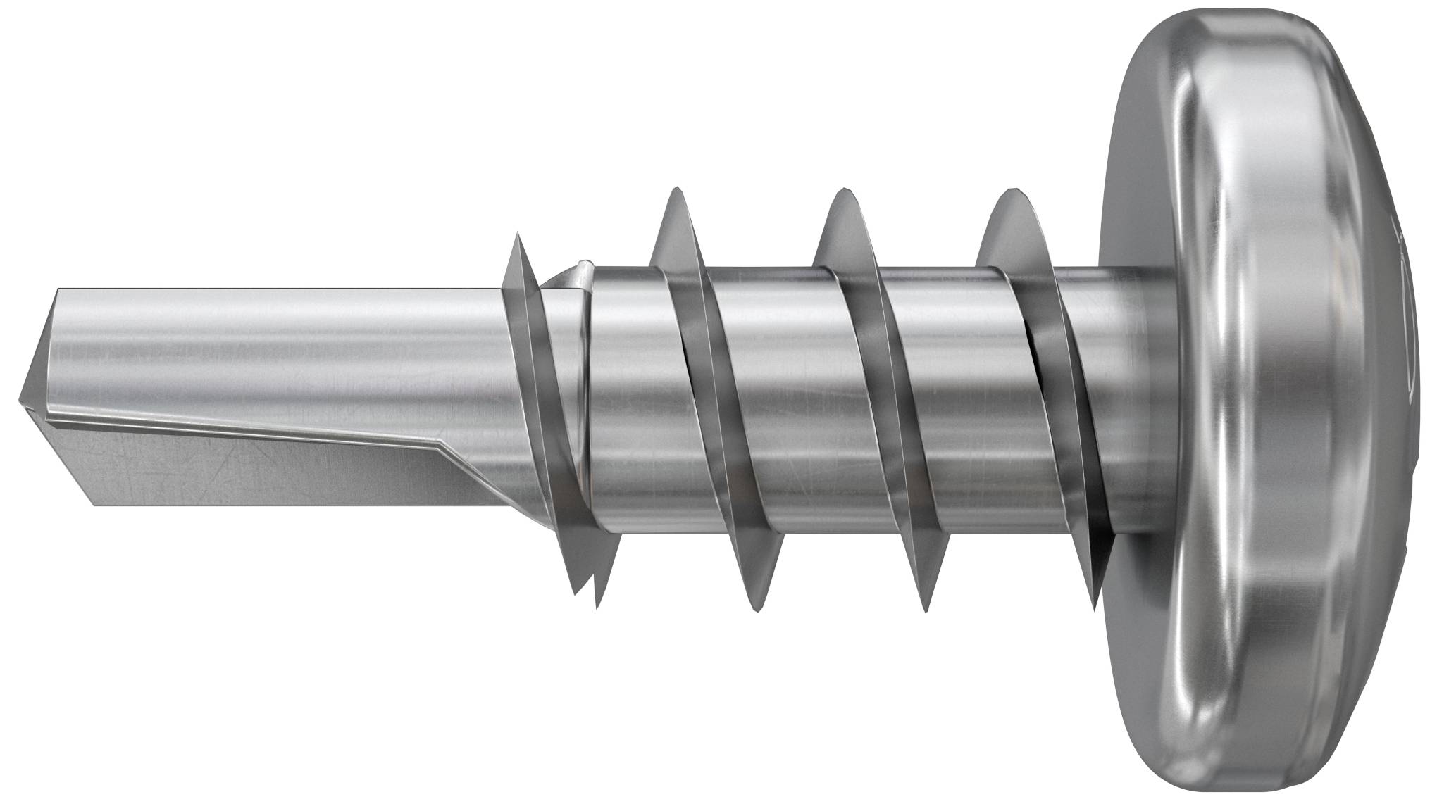 Selbstbohrende Schrauben aus A2-Edelstahl mit Linsenkopf Selbstbohrende Schrauben sorgen für eine schnelle Befestigung und einen guten Halt. Montage mit Akku-Schrauber.