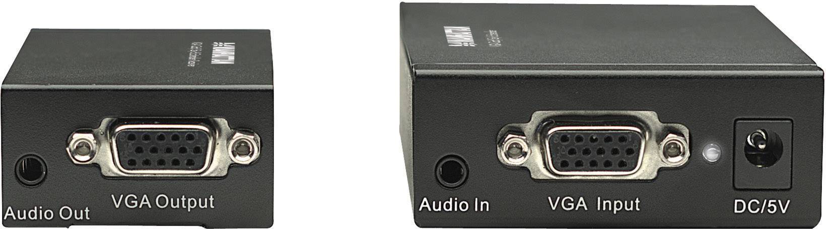 Ideal für Messeauftritte, Klassenräume, Home Theater Systeme, Konferenzräume und Ladengeschäfte, ermöglicht der MANHATTAN VGA Cat5/5e/6 Extender das Platzieren eines Bildschirms und Lautsprechern in einer Entfernung von bis zu 300 m von der Quelle. Manuelle Helligkeits- und RGB-Einstellungen helfen bei der Feineinstellung des Bildes für eine optimale Signalqualität.