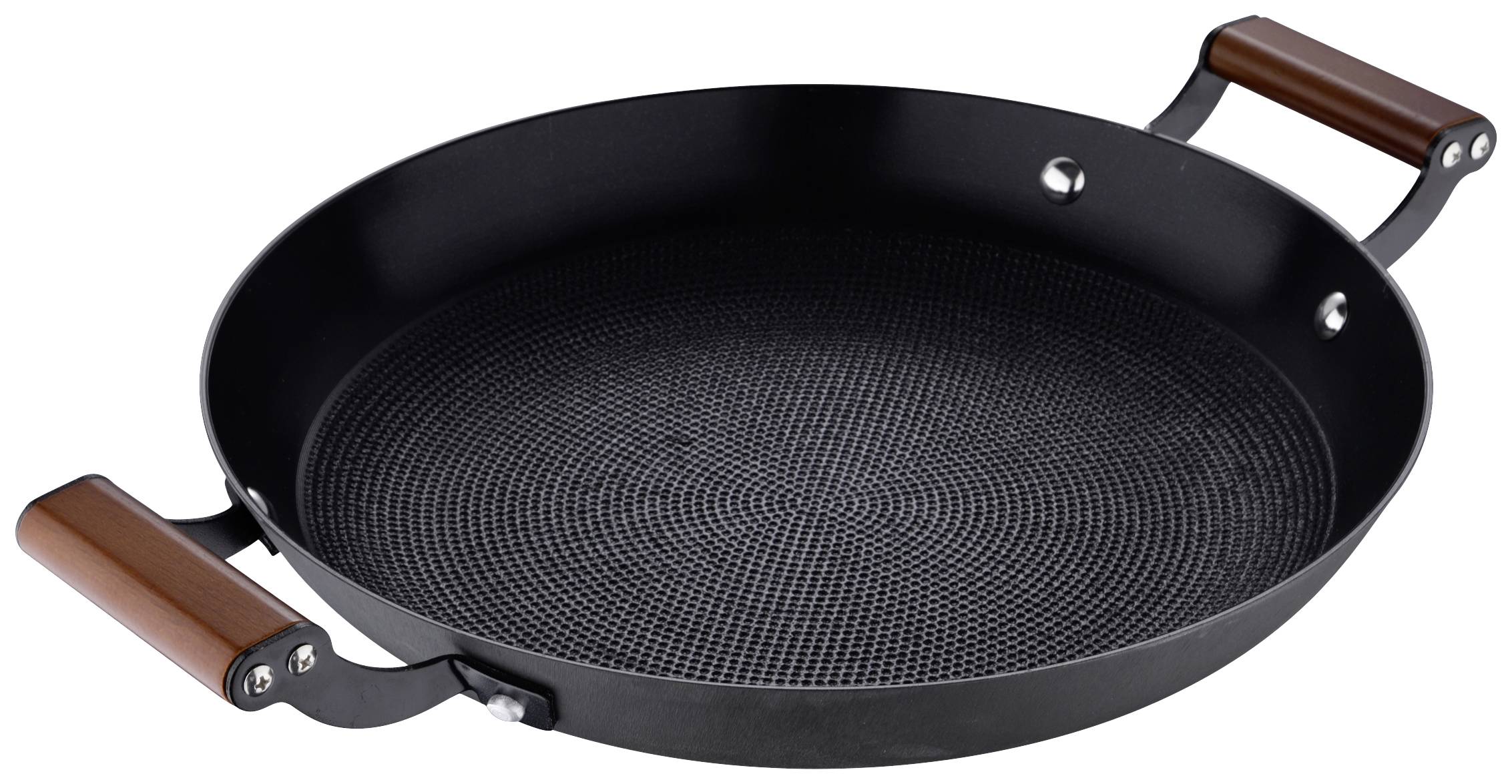 Dank einer Außenbeschichtung wird die Hitze gleichmäßig vom Boden der Paella-Pfanne bis zu den Seitenwänden verteilt. Ideal für die Zubereitung fettarmer und gesunder Speisen beim langsamen Kochen.