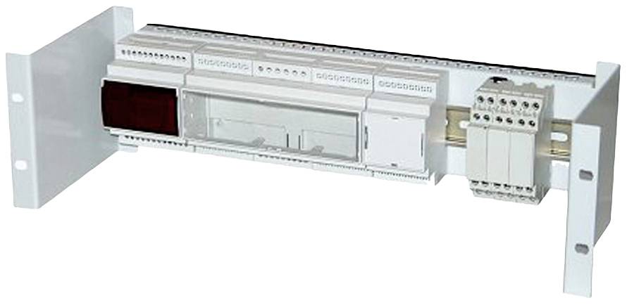 Standardmäßig bestückt mit Hutschiene TS 35 (Breite 425mm); Einbau anderer Hutschienentypen und -größen auf Anfrage möglich