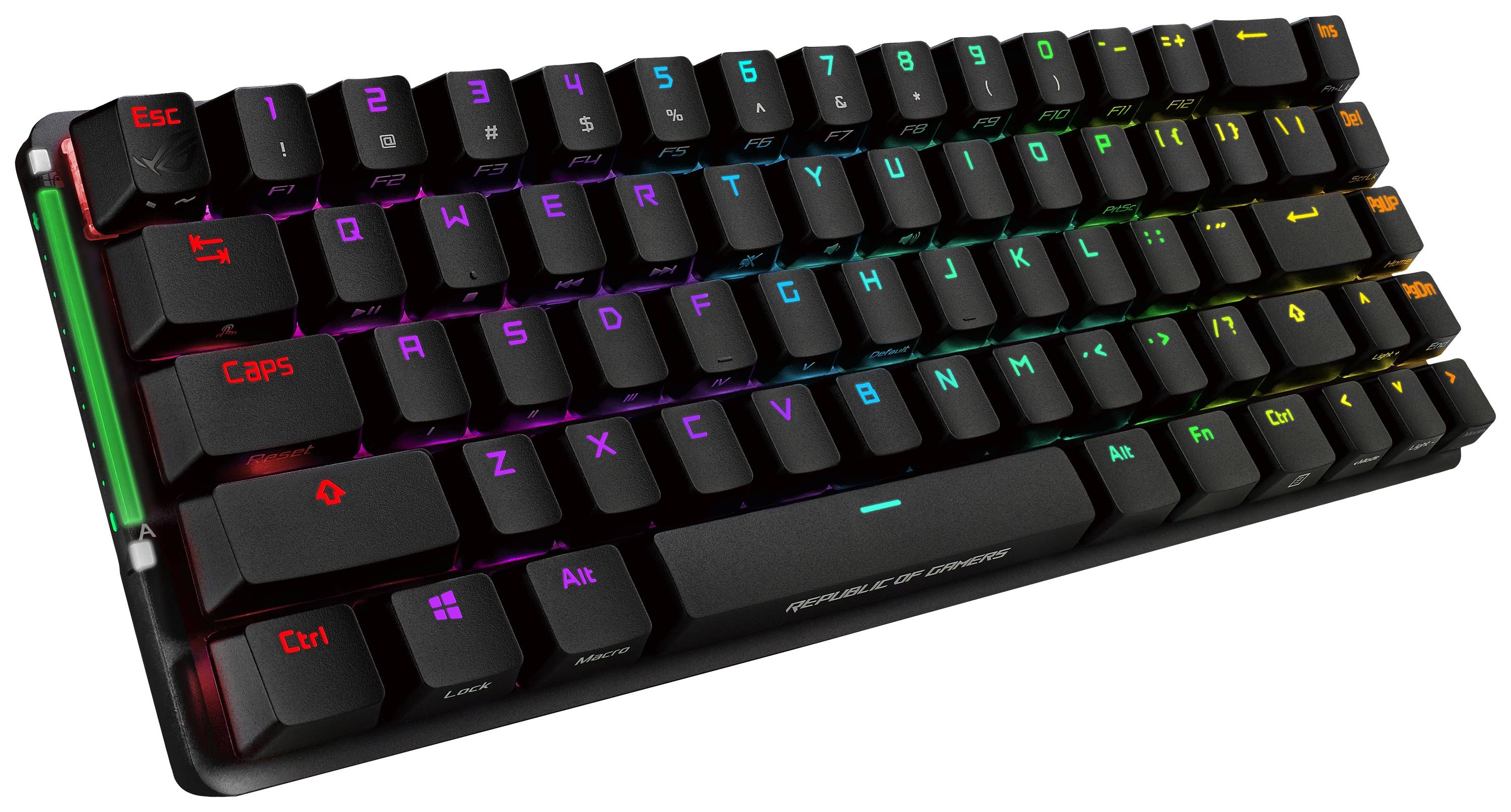 Kompaktes 68-Tasten-Layout mit clever integrierten Pfeil- und Navigationstasten Interaktives Touchpanel zum einfachen Konfigurieren von persönlichen Einstellungen und Tastenbelegungen Gaming-Qualität mit 1ms bei 2,4GHz RF und bis zu 400 Stunden Akkulaufzeit* für eine zuverlässige, ausdauernde Performance (*ohne RGB-Beleuchtung) Ein innovatives Tastaturcover bietet Schutz für unterwegs Die erste kabellose ROG-Tastatur mit individueller RGB-Beleuchtung für jede Taste und Aura-Sync-Technologie In Deutschland hergestellte, mechanische Cherry-MX-RGB-Switches für präzise Eingaben mit taktilem Feedback