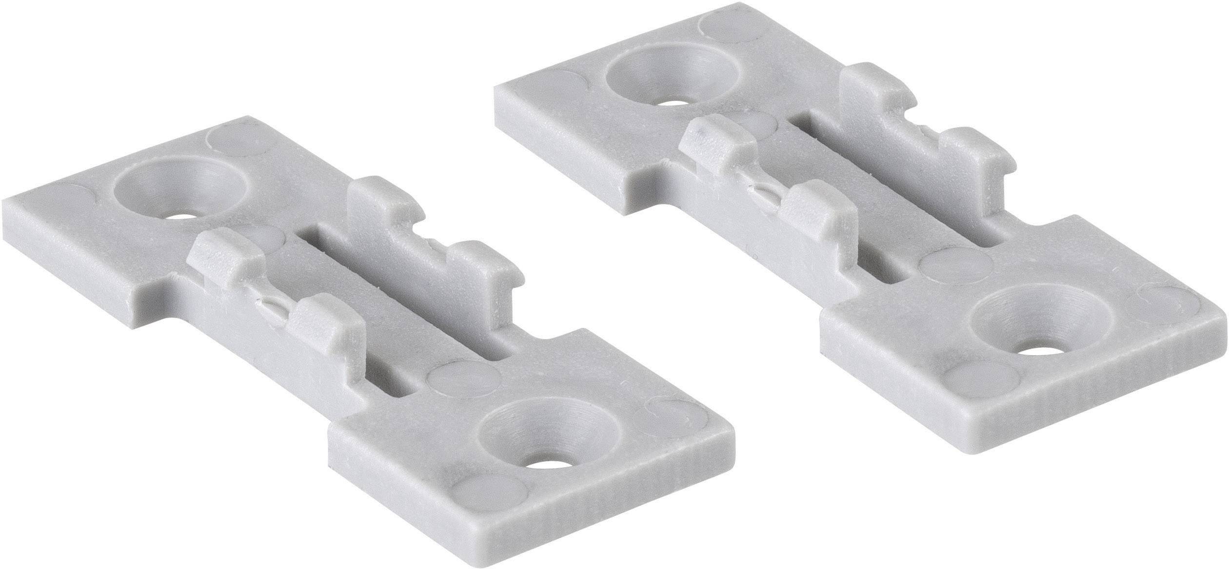 2 Wandhalter mit Schrauben für GARgano-Aluprofil. Die Halteclips werden von unten bündig in das GARgano-Profil geklippt und sind dadurch nicht sichtbar. Das GARgano-Profil lässt sich mittels Schraubendreher einfach wieder vom Halter lösen.