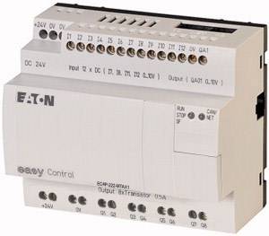 Mit der Kompaktsteuerung easy Control führt Moeller die Erfolgsgeschichte seiner easy Steuerrelais konsequent fort. easy Control im easy800 Gehäuse rundet das bestehende easy Sortiment leistungsmäßig nach oben ab und schließt die Lücke zwischen easy Steuerrelais und speicherprogrammierbarer Steuerung. Mit dem auf IEC 61131-3 basierenden Programmiertool easy Soft CoDeSys und 256 k großem Programmspeicher erhält der Anwender eine ausgereifte Kompaktsteuerung. Die Kompaktsteuerung lässt sich mit dem Standard easy-System von Moeller kombinieren. Via integrierter CANopen Schnittstelle eröffnen sich Kommunikationsoptionen zu nahezu allen Automatisierungsgeräten. Ob CANopen oder easy.NET: Dank kombinierter CANopen-Schnittstelle entscheiden Anwender selbst über ihre Vernetzungsstruktur. An die CANopen-Schnittstelle lassen sich verschiedenste Peripherie-Geräte anschließen, so etwa dezentrale I/O-Systeme, Antriebe, HMIs etc. Ethernet befindet sich optional on board und berücksichtigt ebenso entsprechende Anforderungen wie OPC-Server, einfaches Programmieren und die Einbindung in bestehende Infrastrukturen. easy Control gibt es in 16 Produktvarianten (je nach Variante Relais oder Transistor, mit oder ohne Display, mit oder ohne Ethernet, mit oder ohne analogen Ausgang) und ist als Kompaktsteuerung für Anwendungen im Maschinenbau, als Lösung für Geräte und Handling-Systeme oder zum Einsatz als komfortables Logik- und Schaltmodul konzipiert worden. Die Kompaktsteuerung eröffnet völlig neue Optionen. Zur Programmierung wird das bekannte und weit verbreitete Programmiersystem CoDeSys der Firma 3S verwendet. easy Soft CoDeSys beinhaltet alle fünf Programmiersprachen nach IEC61131-3 (AWL, KOP, FBS, ST, AS) sowie den freigrafischen Funktionsplaneditor CFC. Besonders hervorzuheben ist die komplette Simulation des Projekts auch ohne angeschlossene SPS (Offline Simulation). Grafische Steuerungskonfiguration, umfangreiche Dokumentationsmöglichkeiten, leistungsfähige Test- und Inbetriebnahme- Werkzeuge sowie beliebige Online-Änderungen sind weitere Leistungsmerkmale. Fernprogrammierung ist ebenso möglich wie die Programmierung unterlagerter Steuerungen in einem Netzwerk. Neben dem in easy Soft CoDeSys integrierten I/O Assistant steht eine umfangreiche Regelungstechnik- und Motion Control Toolbox mit zahlreichen Funktionsbausteinen wie Regler, Pulsweitenmodulation, Signalverarbeitung, Simulationen und mathematische Aufgaben zur Verfügung. easy Control ist optional mit einem steckbaren, nullspannungssicheren Speichermodul ausrüstbar. Es dient der Sicherung und dem Transport des Applikationsprogramms oder von Rezepturen in einem zusätzlichen Adapter. Das Speichermodul ist so ausgelegt, dass sich eine Standard-MMC-RS (RS reduced size) stecken lässt. Die Speicherkarte wird durch einen Schieber gegen unbeabsichtigtes Entfernen gesichert.